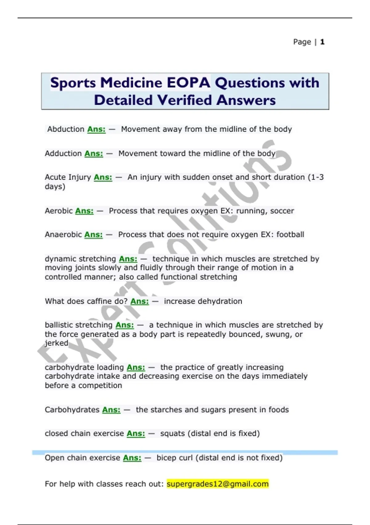 Sports Medicine EOPA Questions with Detailed Verified Answers Sports Medicine EOPA Questions with Detailed Verified Answers