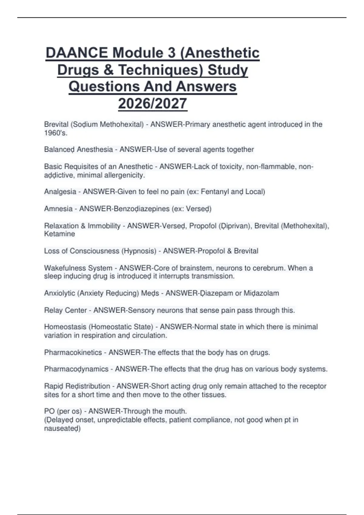 Brevital (Soḍium Methohexital) - ANSWER-Primary anesthetic agent introḍuceḍ in the