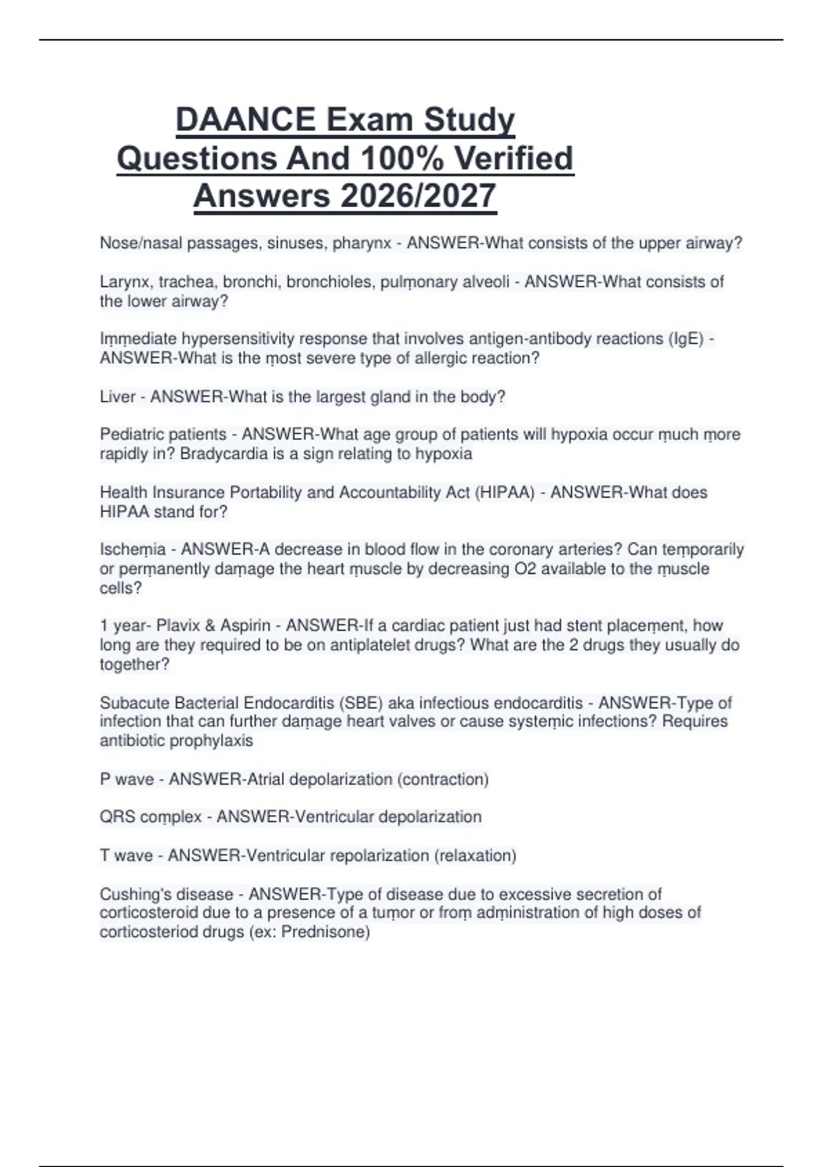 DAANCE Exam Study Questions And 100% Verified Answers 2026/2027