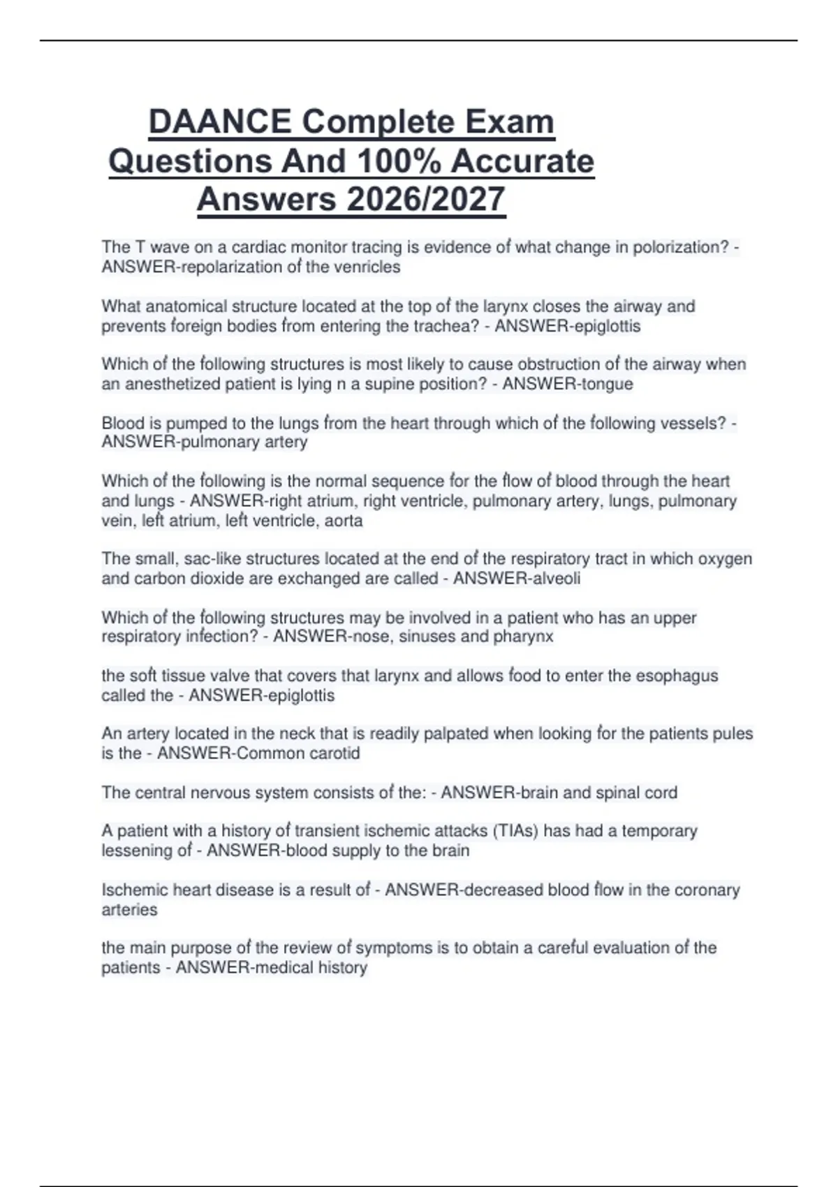 Questions And 100% Accurate