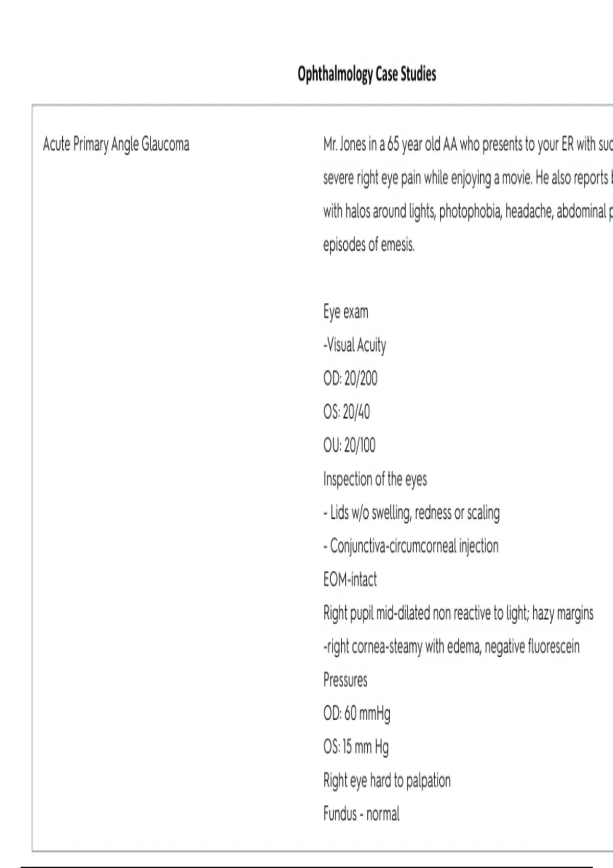 Ophthalmology Case Studies
