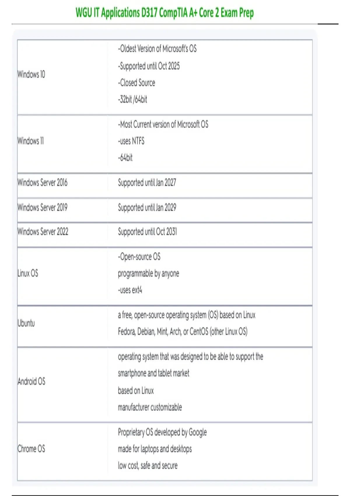 WGU IT Applications D317 CompTIA A+ Core 2 Exam Prep