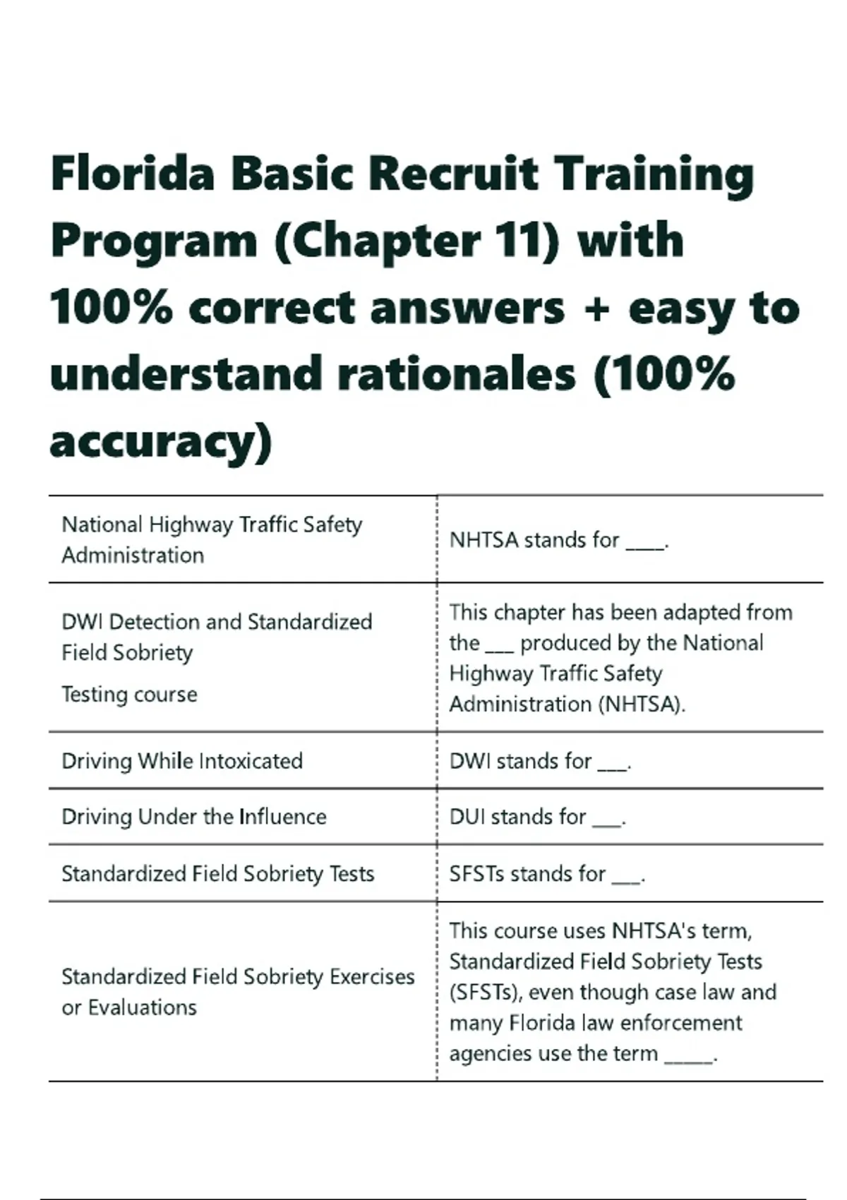 Florida Basic Recruit Training Program (Chapter 11) with 100- correct answers