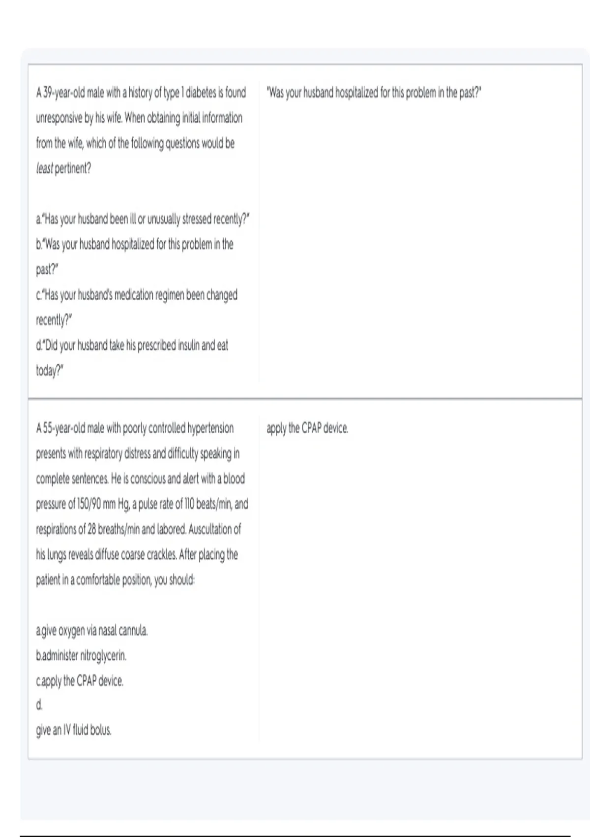 A 39-year-old male with a history of type 1 diabetes is found "Was your husband hospitalized for this problem in the past?"
