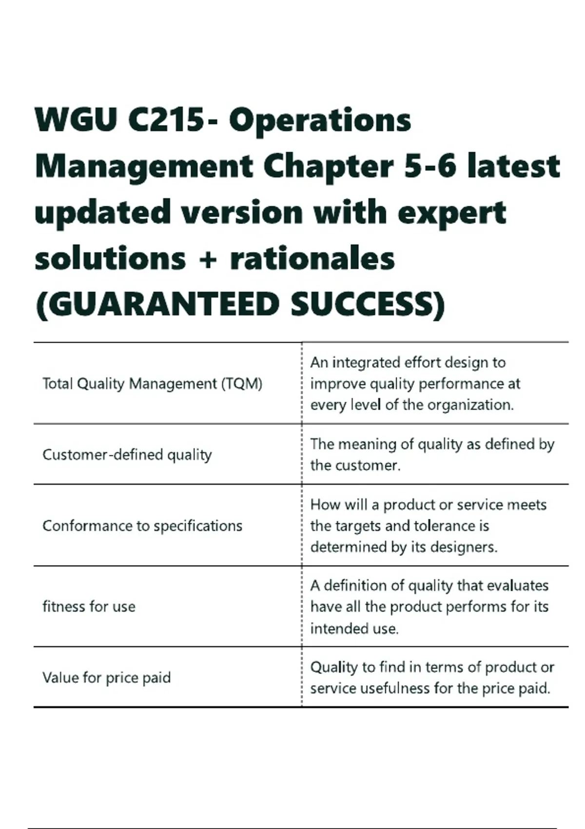 WGU C215- Operations Management Chapter 5-6 latest updated version with expert solutions + rationales