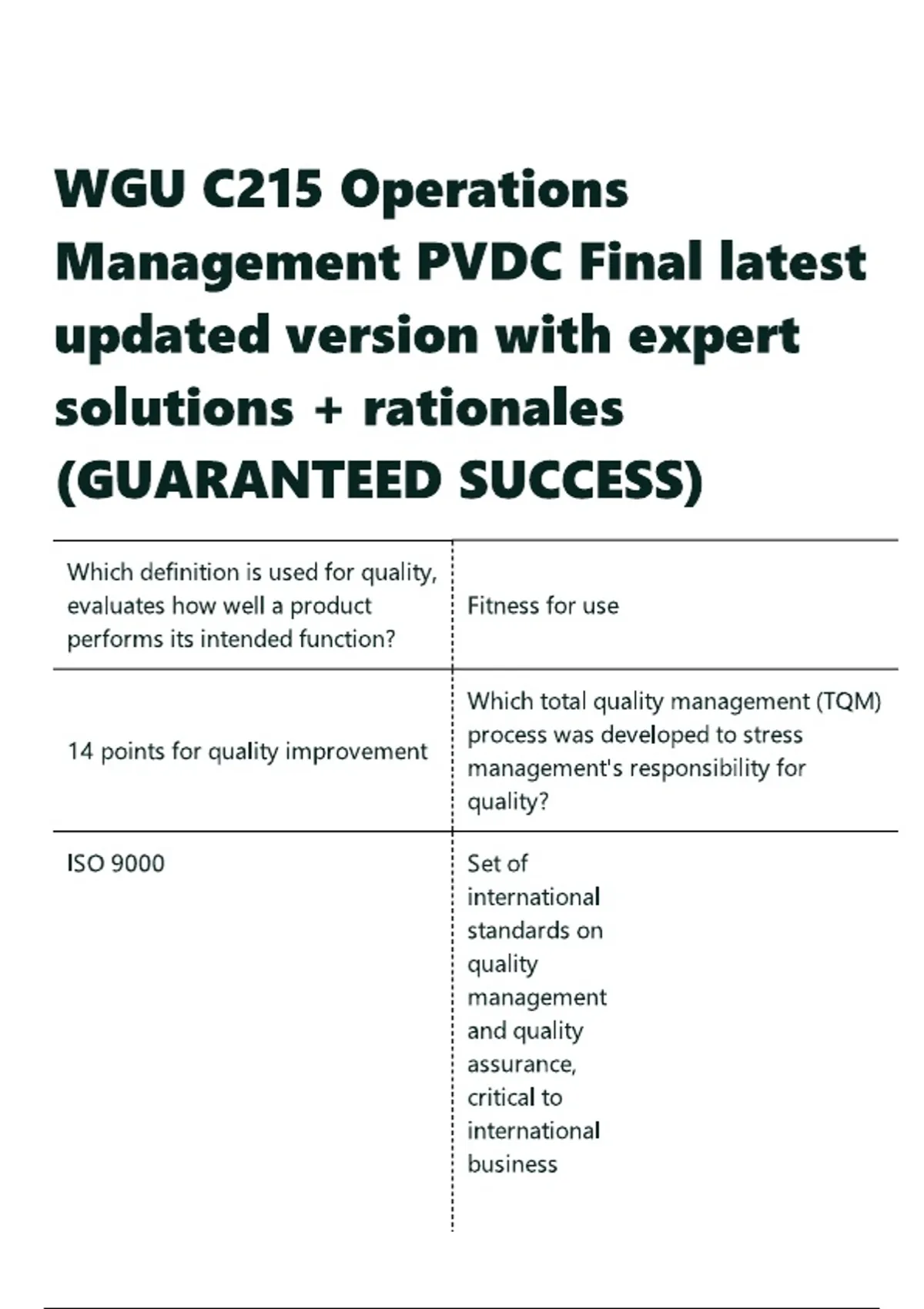 WGU C215 Operations Management PVDC Final latest updated version with expert solutions + rationales