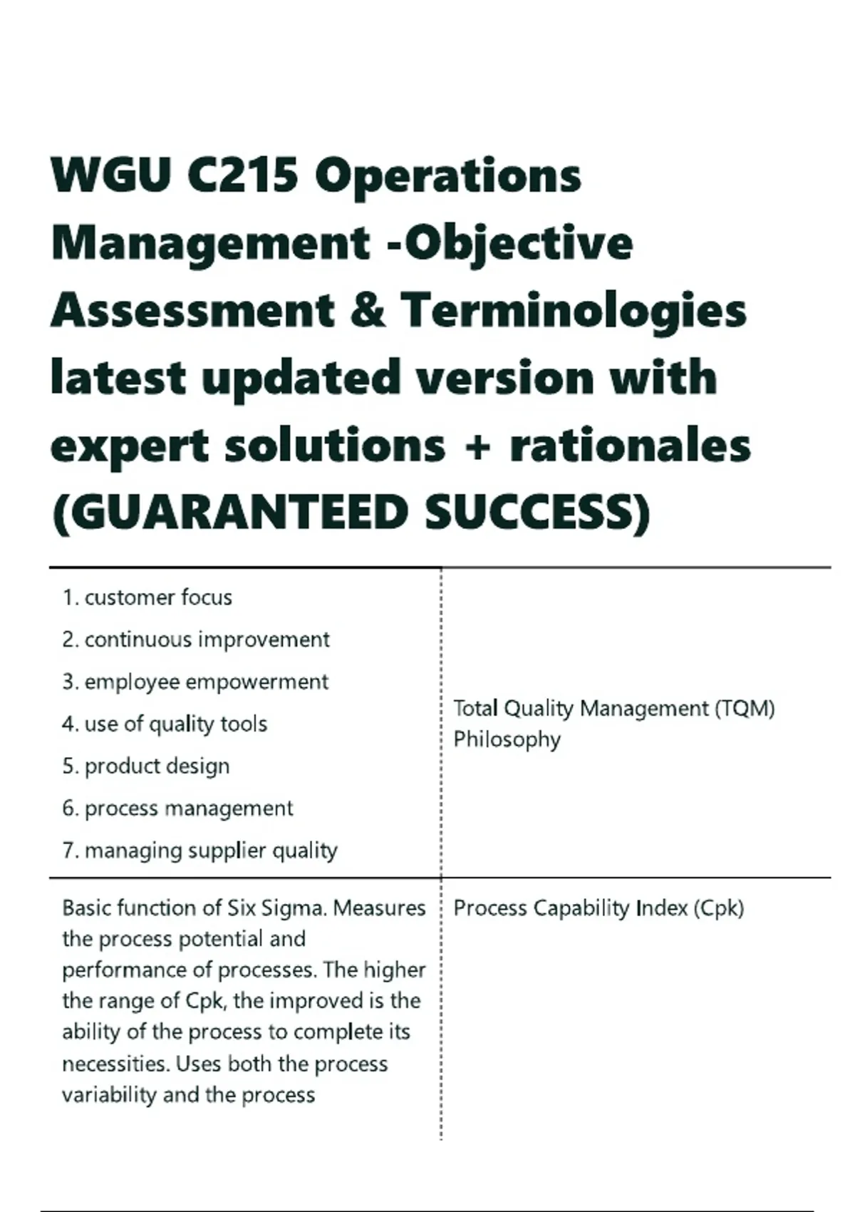 WGU C215 Operations Management -Objective Assessment & Terminologies latest updated version