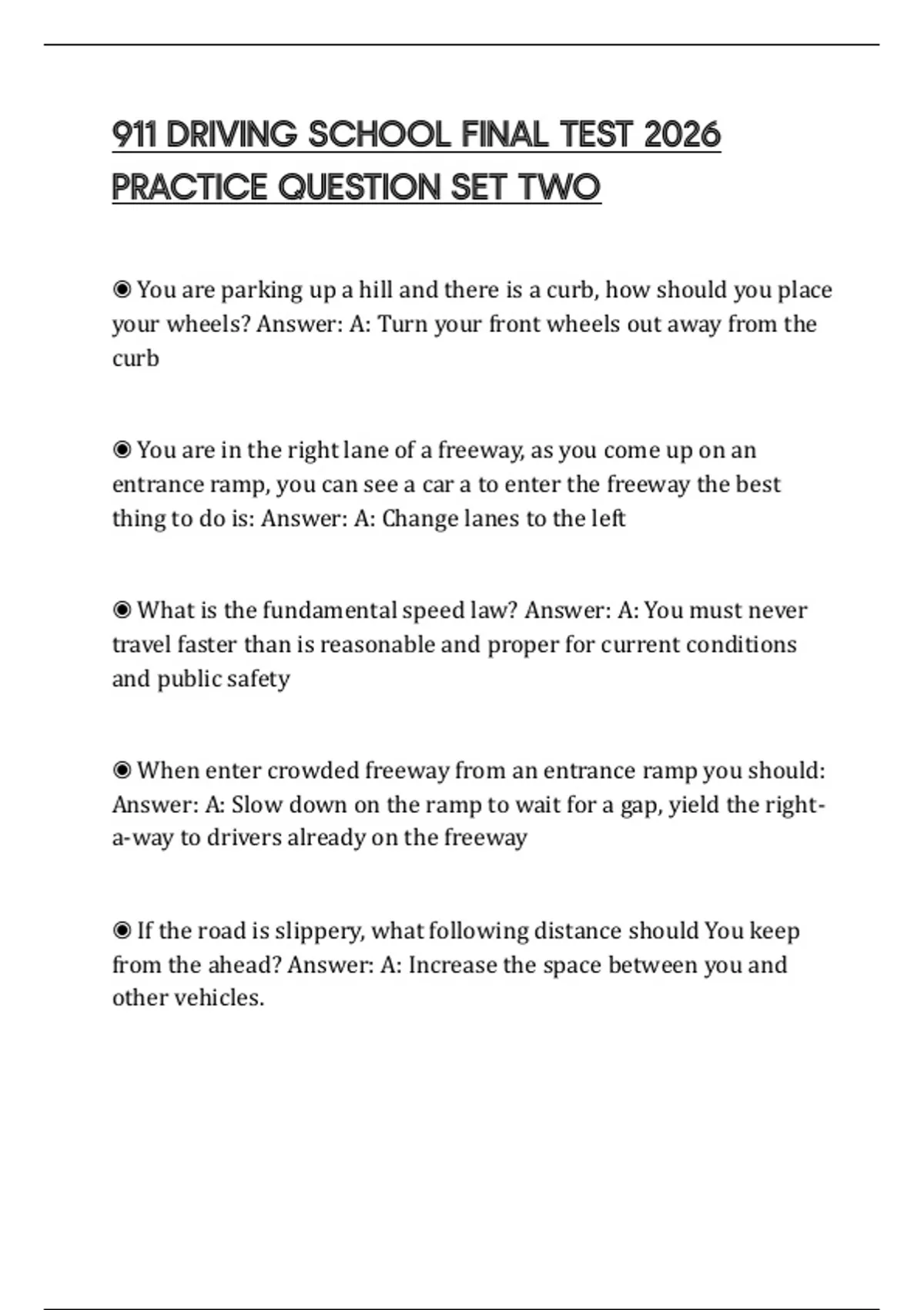 ◉ When enter crowded freeway from an entrance ramp you should:
