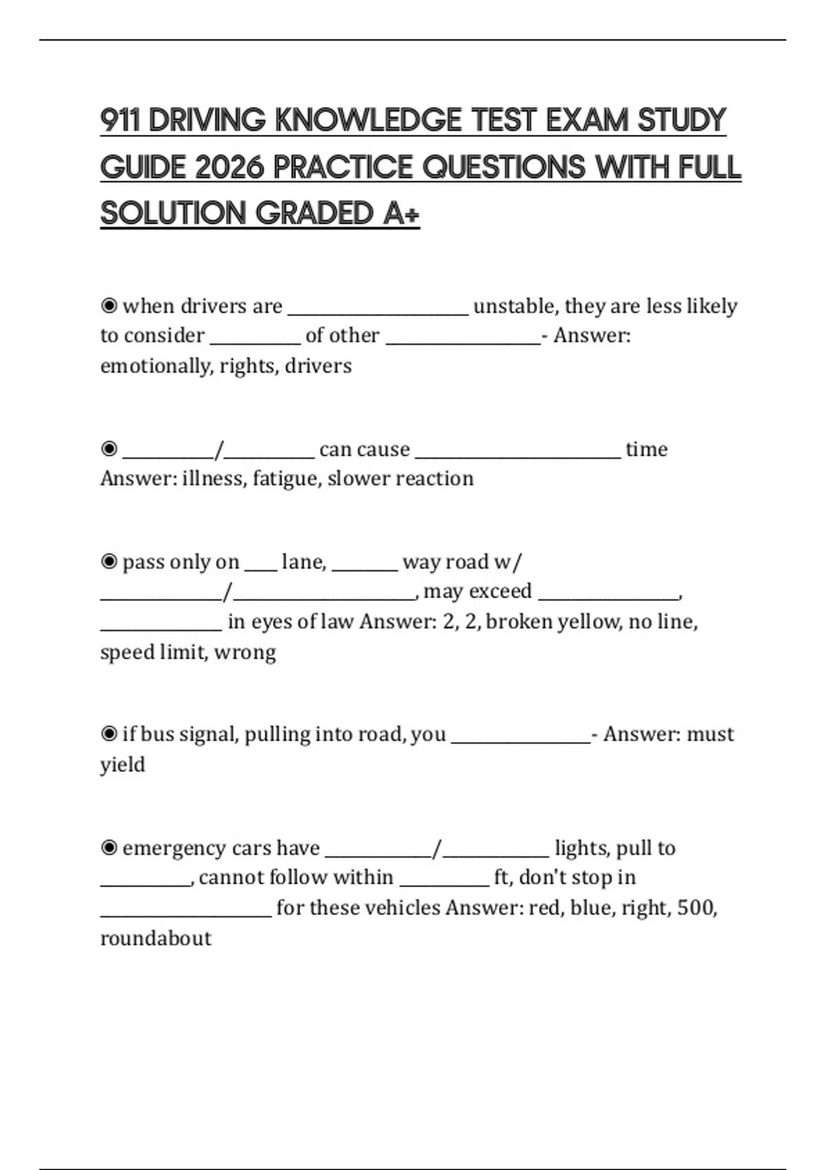 911 DRIVING KNOWLEDGE TEST EXAM SCRIPT 2026 COMPREHENSIVE QUESTIONS AND SOLUTIONS GRADED A+