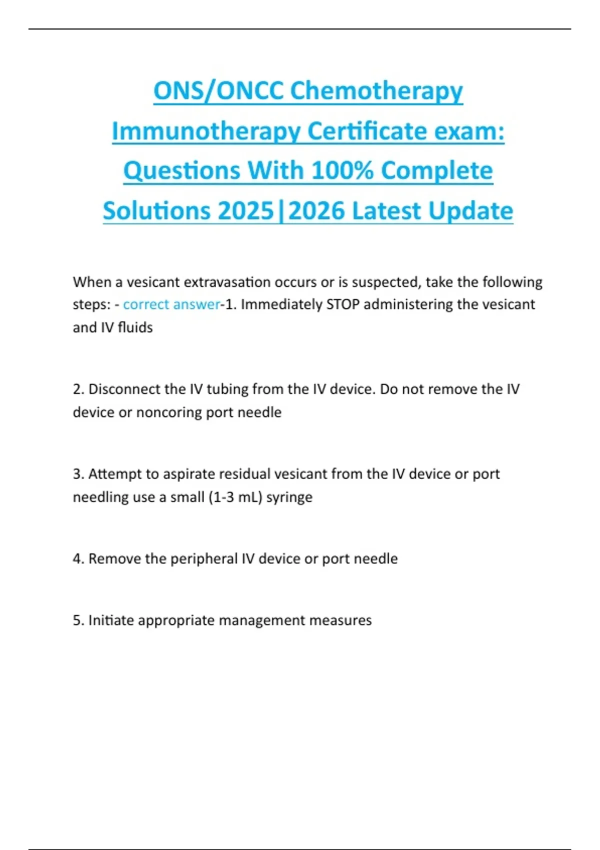 steps: - correct answer-1. Immediately STOP administering the vesicant