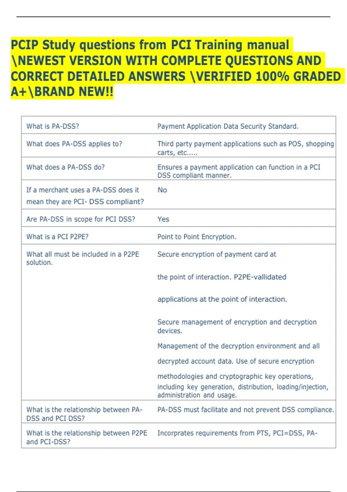 PCIP Study questions from PCI Training manual NEWEST VERSION WITH COMPLETE QUESTIONS AND CORRECT DETAILED ANSWERS VERIFIED 100% GRADED A+BRAND NEW!!
