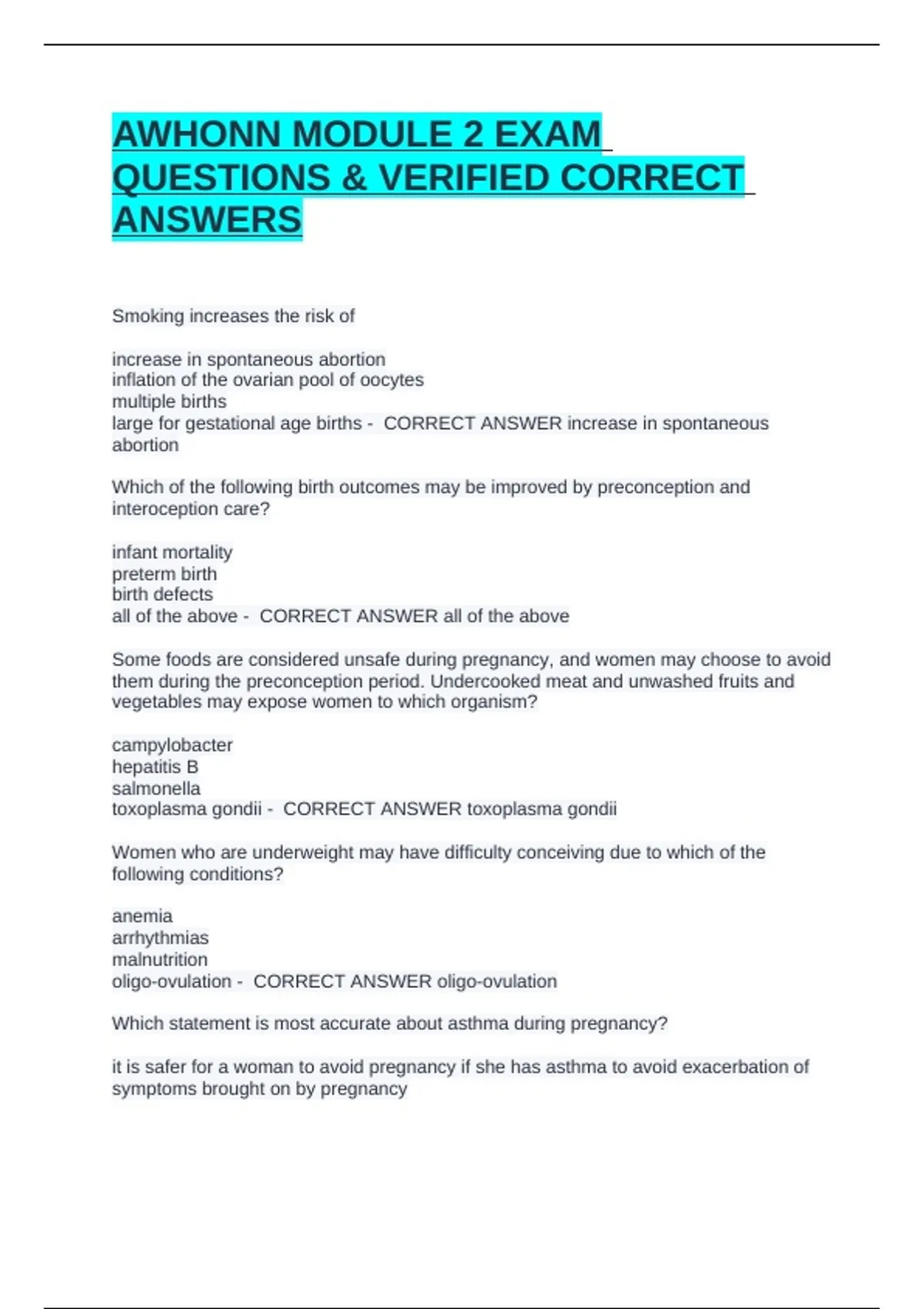 QUESTIONS & VERIFIED CORRECT