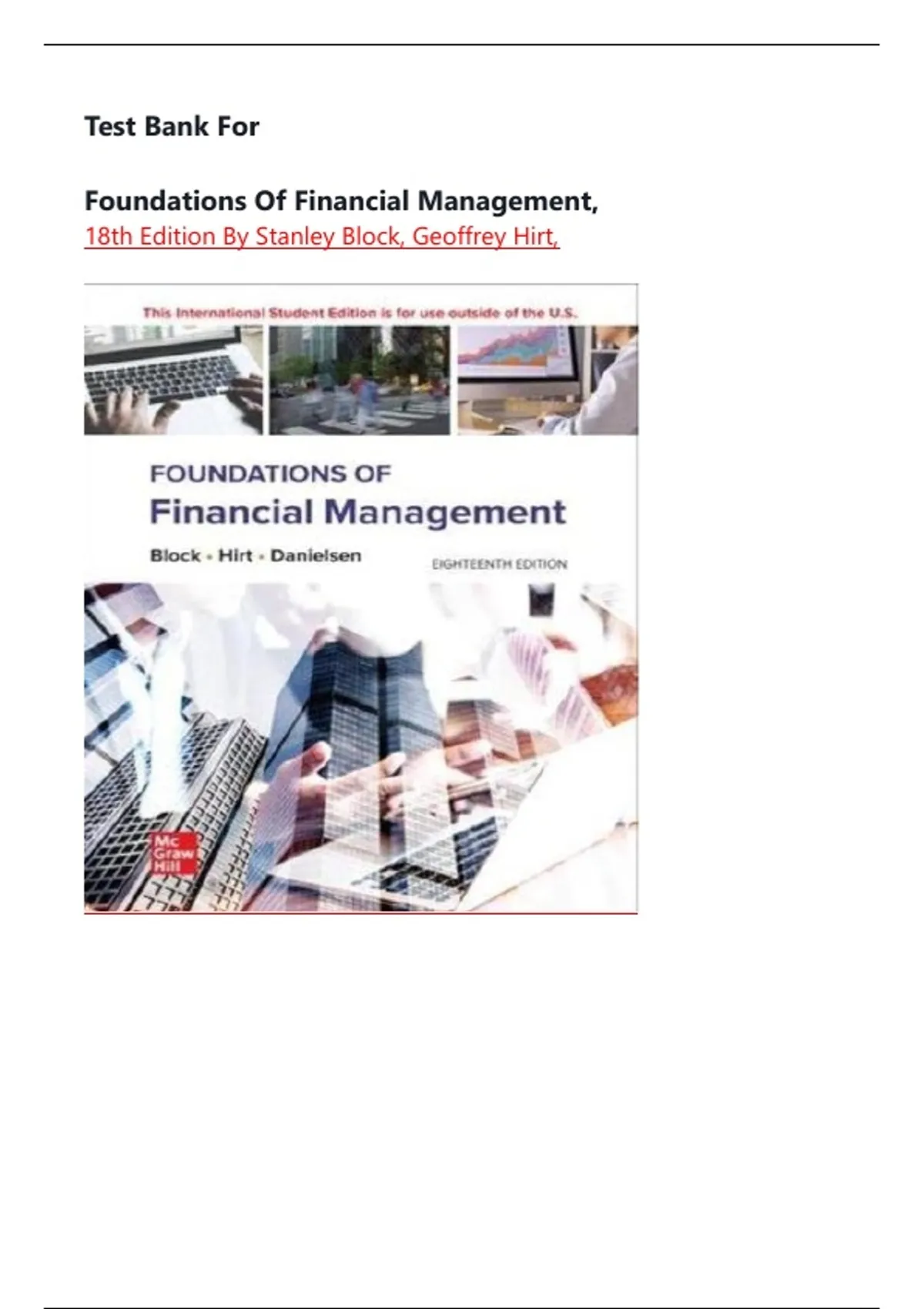 TEST BANK For Foundations of Financial Management, 18th Edition by Stanley Block, Geoffrey Hirt, Bartley Danielsen| Verified Chapter's 1 - 21 | Complete Newest Version