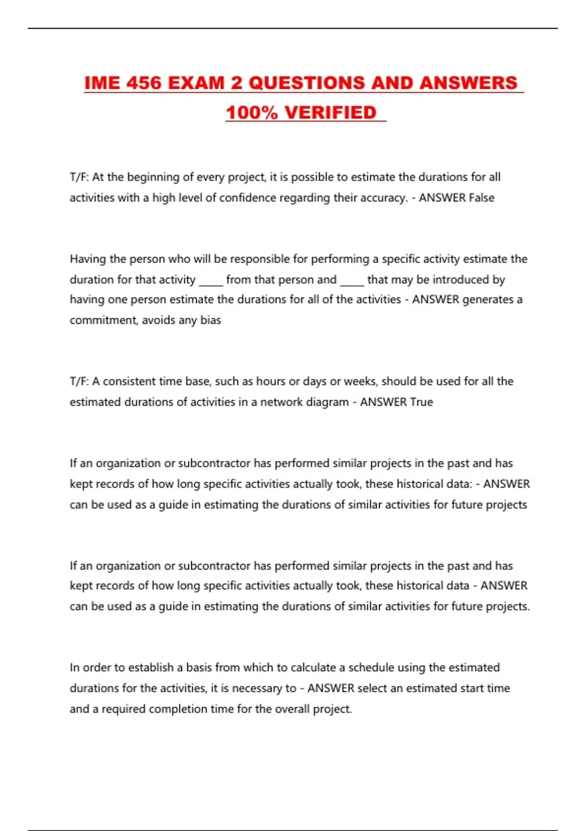 IME 456 EXAM 2 QUESTIONS AND ANSWERS 100% VERIFIED ...