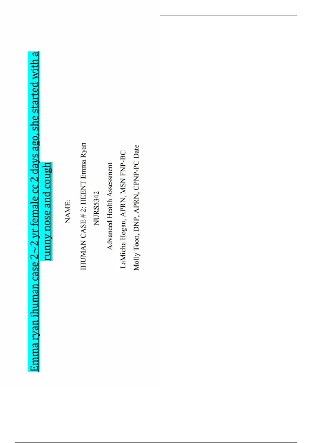 Emma ryan ihuman case 2~2 yr female cc 2 days ago, she started with a runny nose and cough