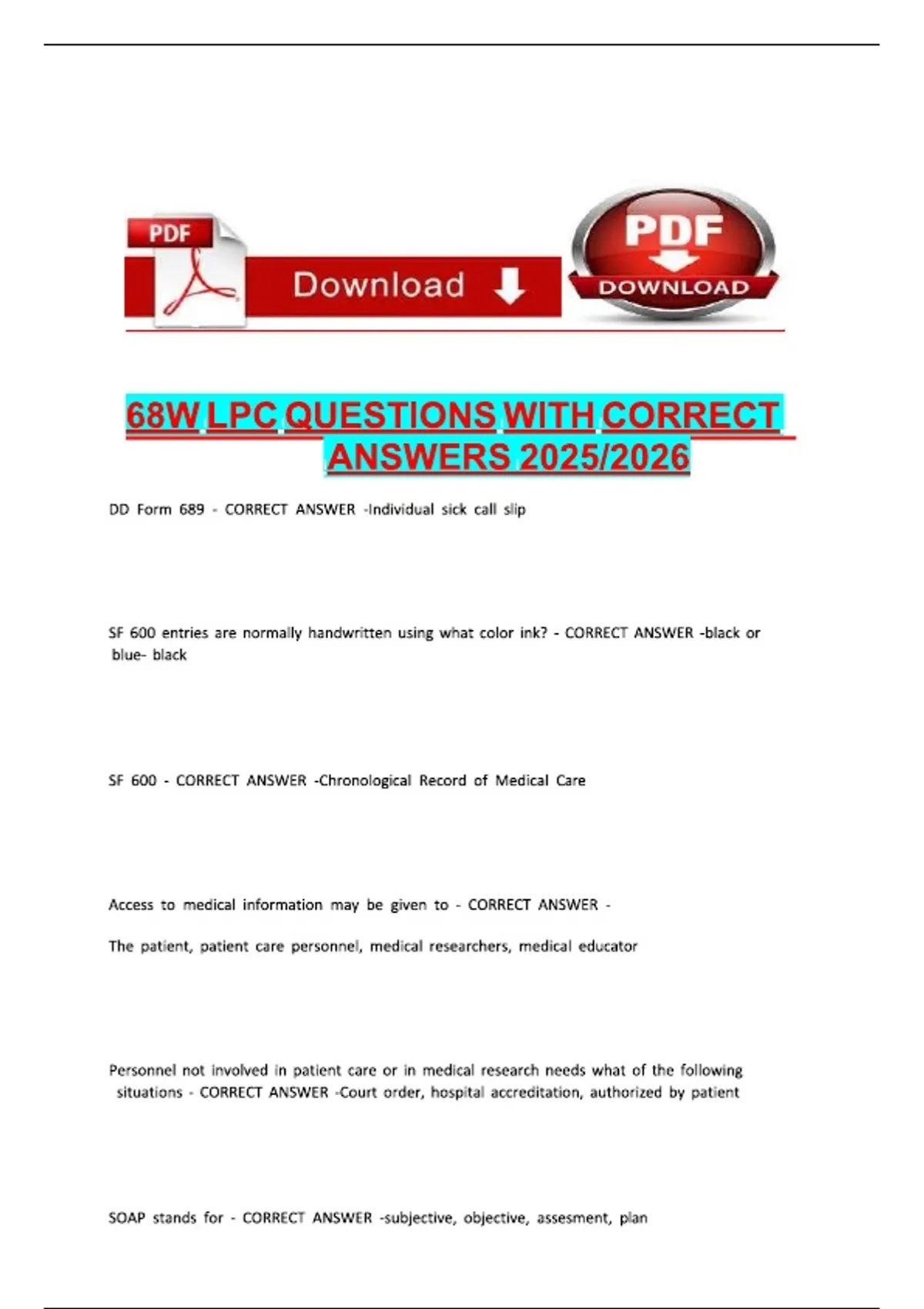68W LPC QUESTIONS WITH CORRECT ANSWERS