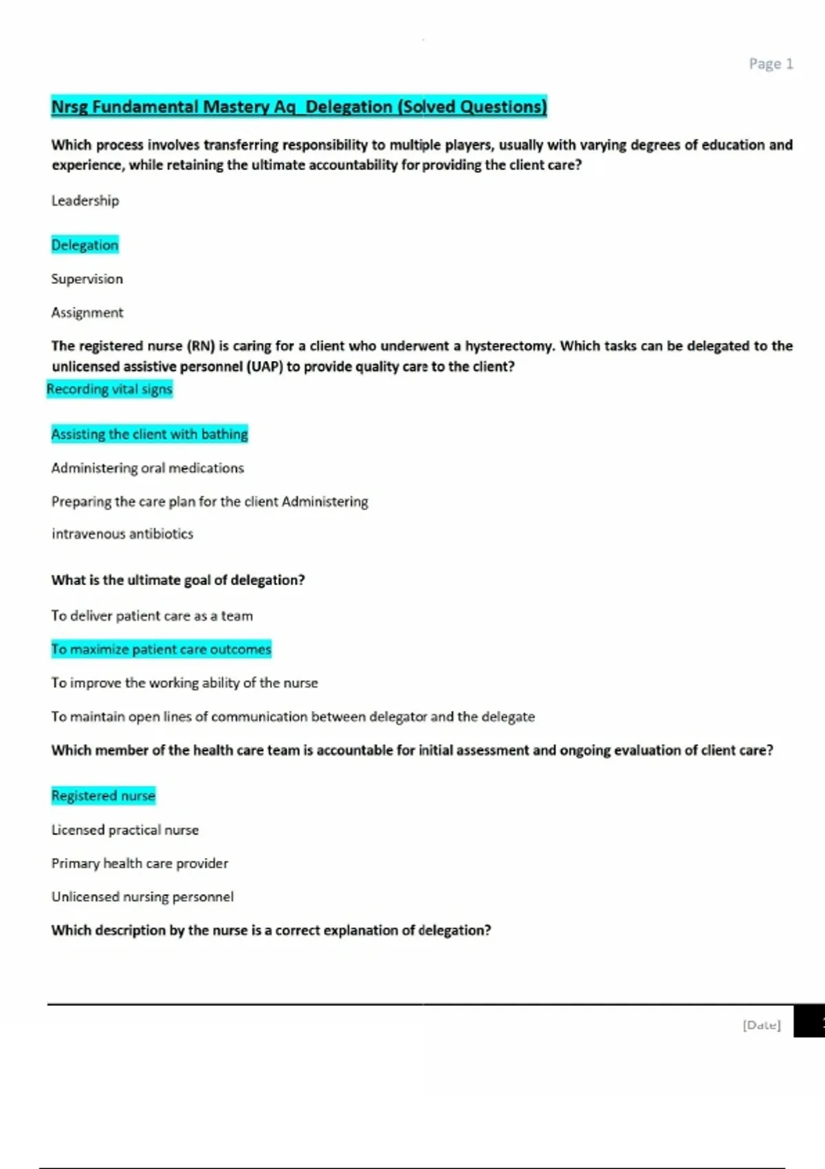 - Nrsg Fundamental Mastery Aq_Delegation (Solved Que