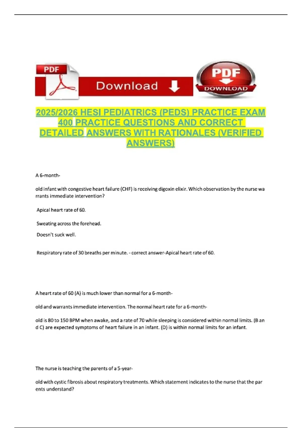 HESI PEDIATRICS (PEDS) PRACTI...WITH RATIONALES (VERIFIED ANSWERS)