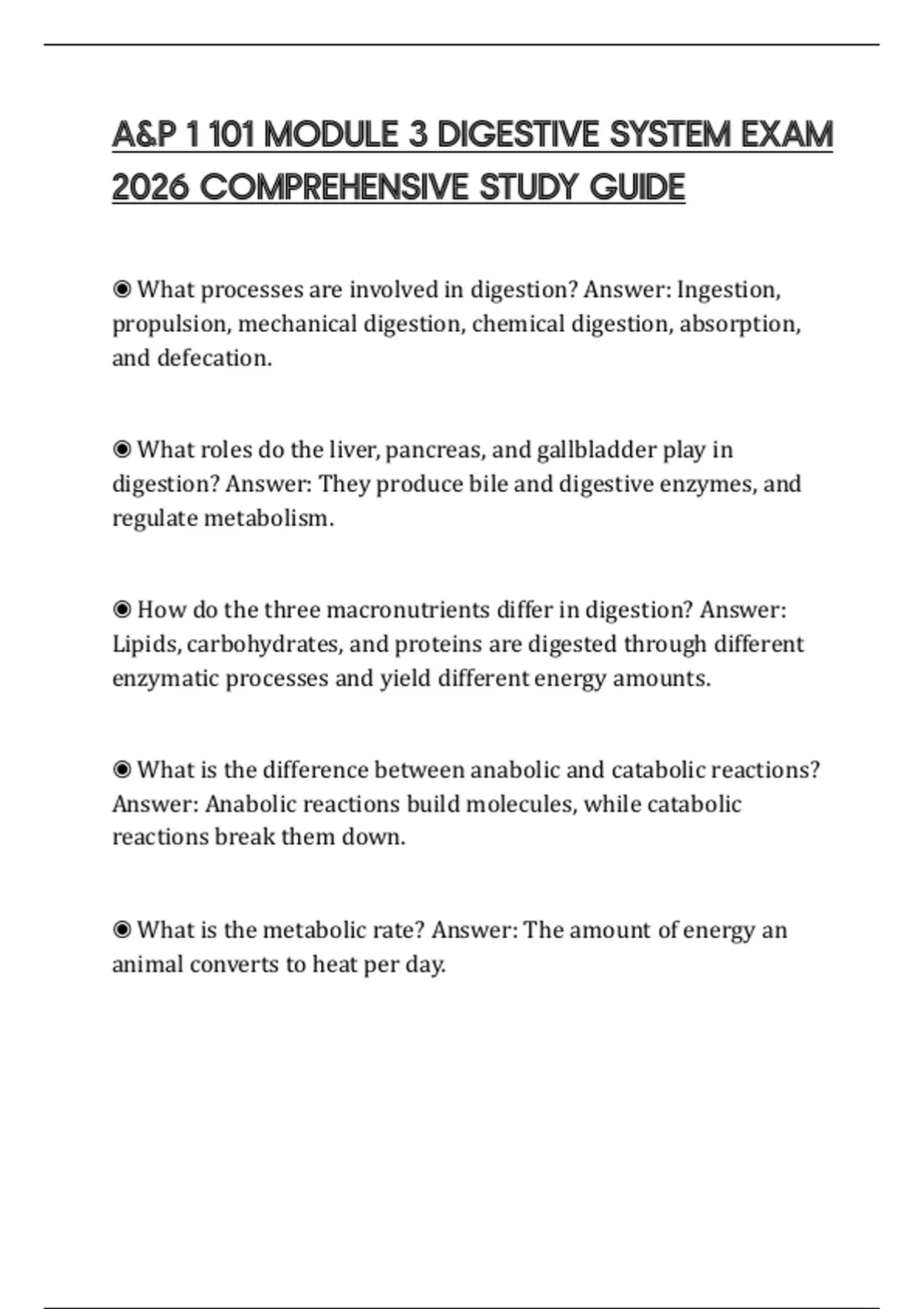 A&P 1 101 MODULE 3 DIGESTIVE SYSTEM EXAM 2026 COMPREHENSIVE STUDY GUIDE