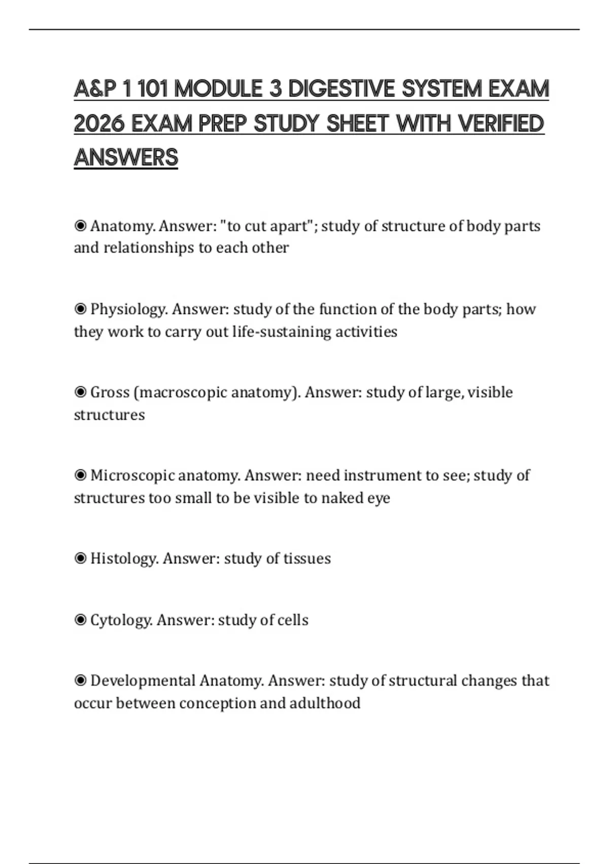 ◉ Microscopic Anatomy. Answer: ex. cytology, histology