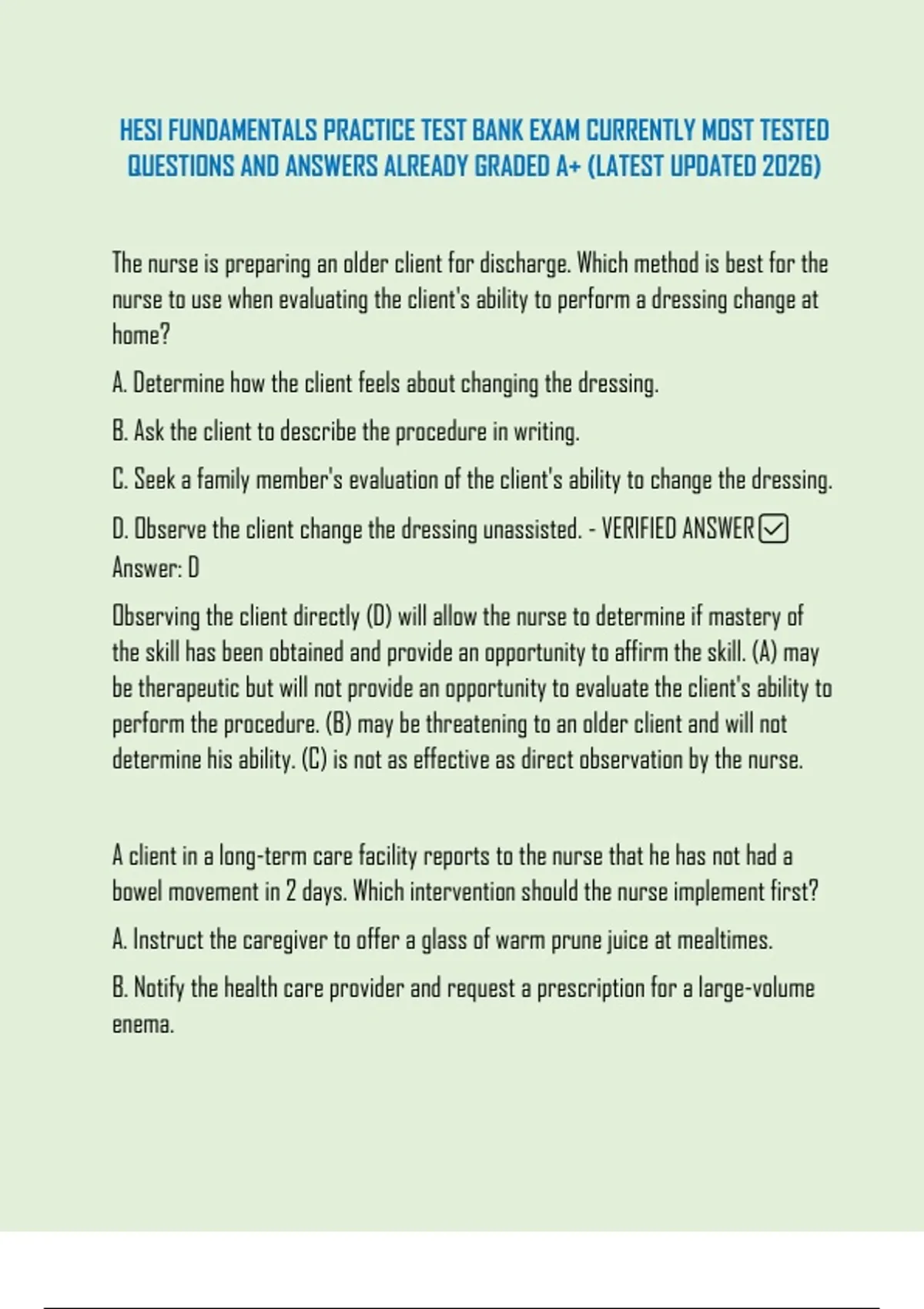 D. Observe the client change the dressing unassisted. - VERIFIED ANSWER✅