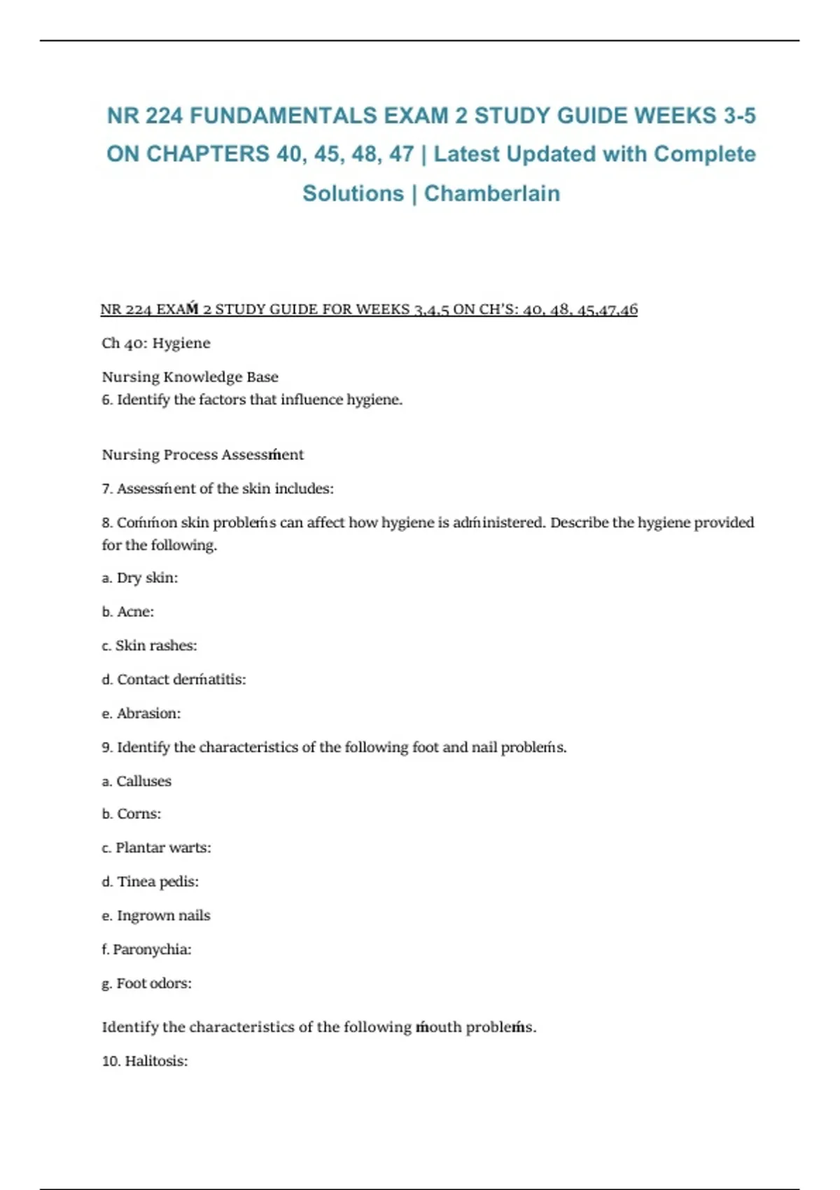 NR 224 EXAḾ 2 STUDY GUIDE FOR WEEKS 3,4,5 ON CH’S: 40, 48, 45,47,46