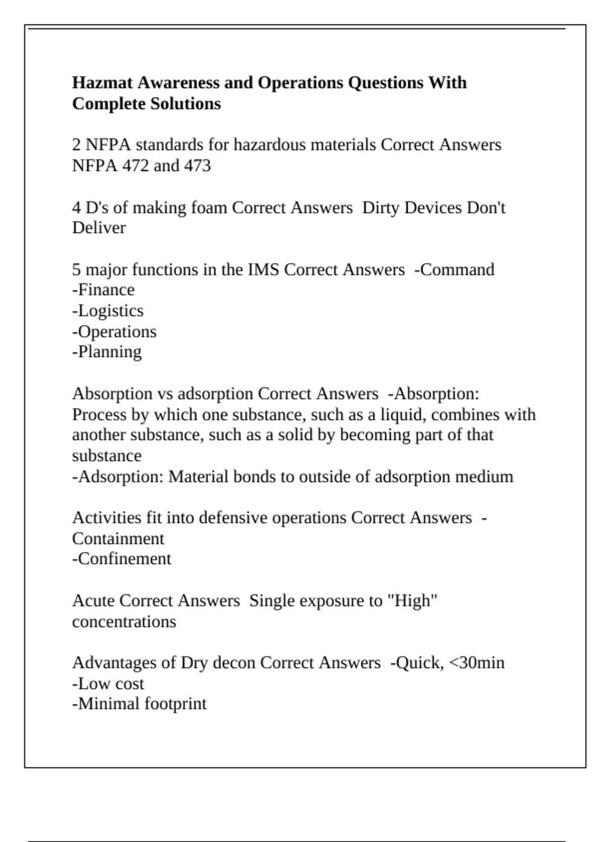 Aqueous Film Forming Foam AFFF Correct Answers -