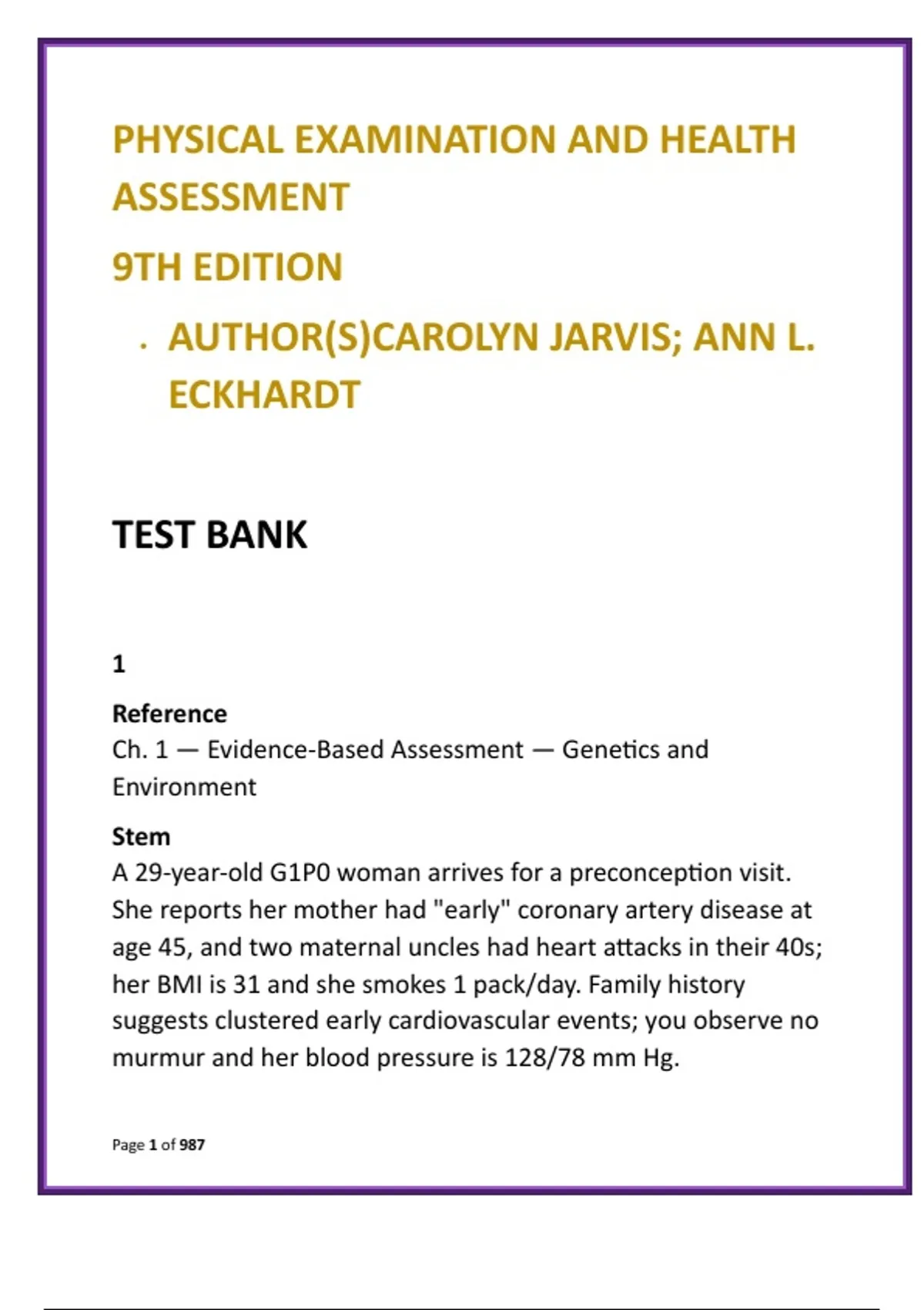 Physical Examination and Health Assessment Test Bank | Jarvis & Eckhardt 9th Ed | Head-to-Toe NCLEX-Style MCQs
