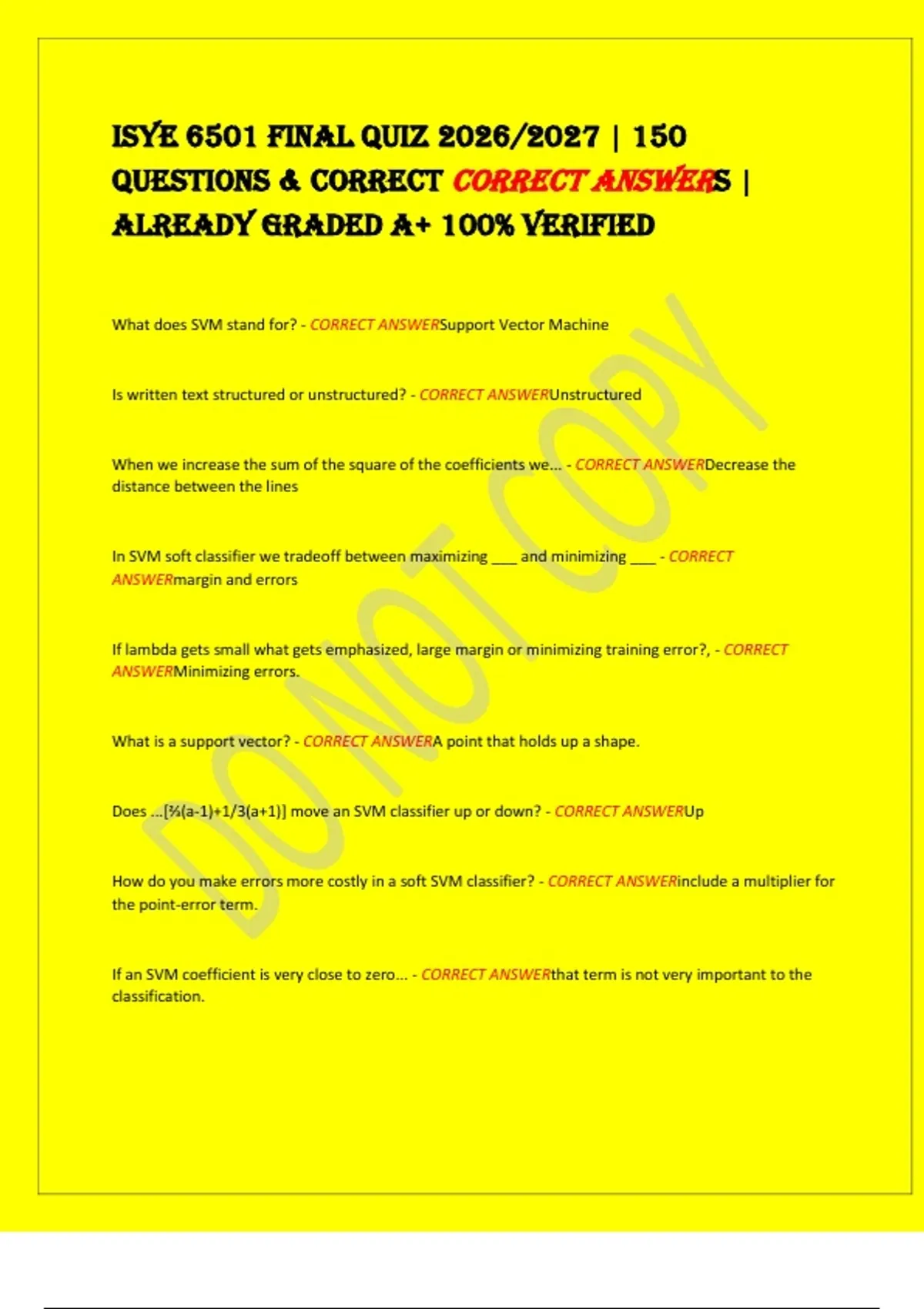 ISYE 6501 Final Quiz 2026/2027 | 150 Questions & Correct CORRECT ANSWERs | Already Graded A+ 100% Verified