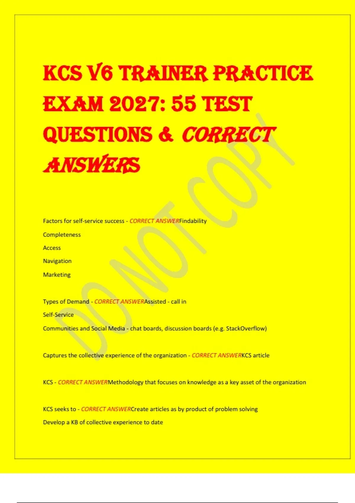 KCS - CORRECT ANSWERMethodology that focuses on knowledge as a key asset of the organization