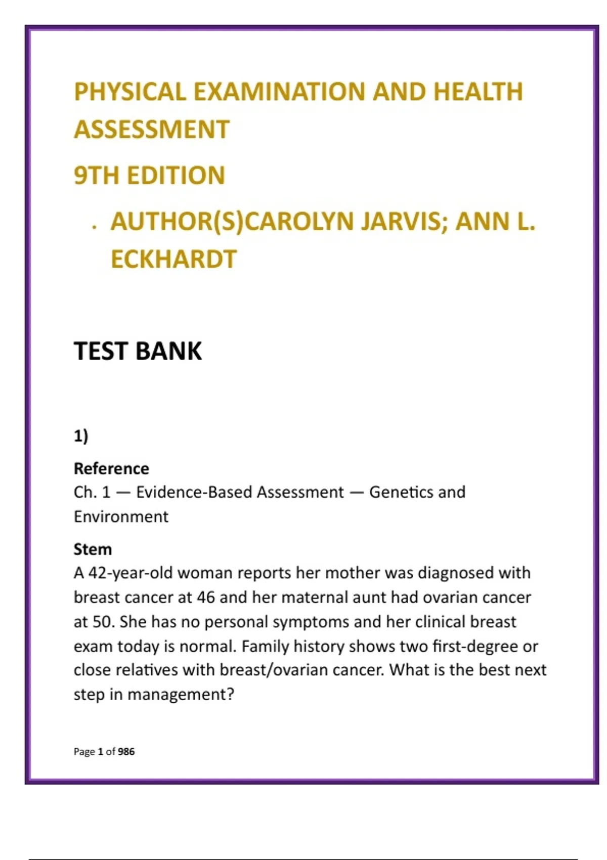 Jarvis Physical Examination & Health Assessment Test Bank (9th Edition) | Comprehensive Head-to-Toe NCLEX MCQs