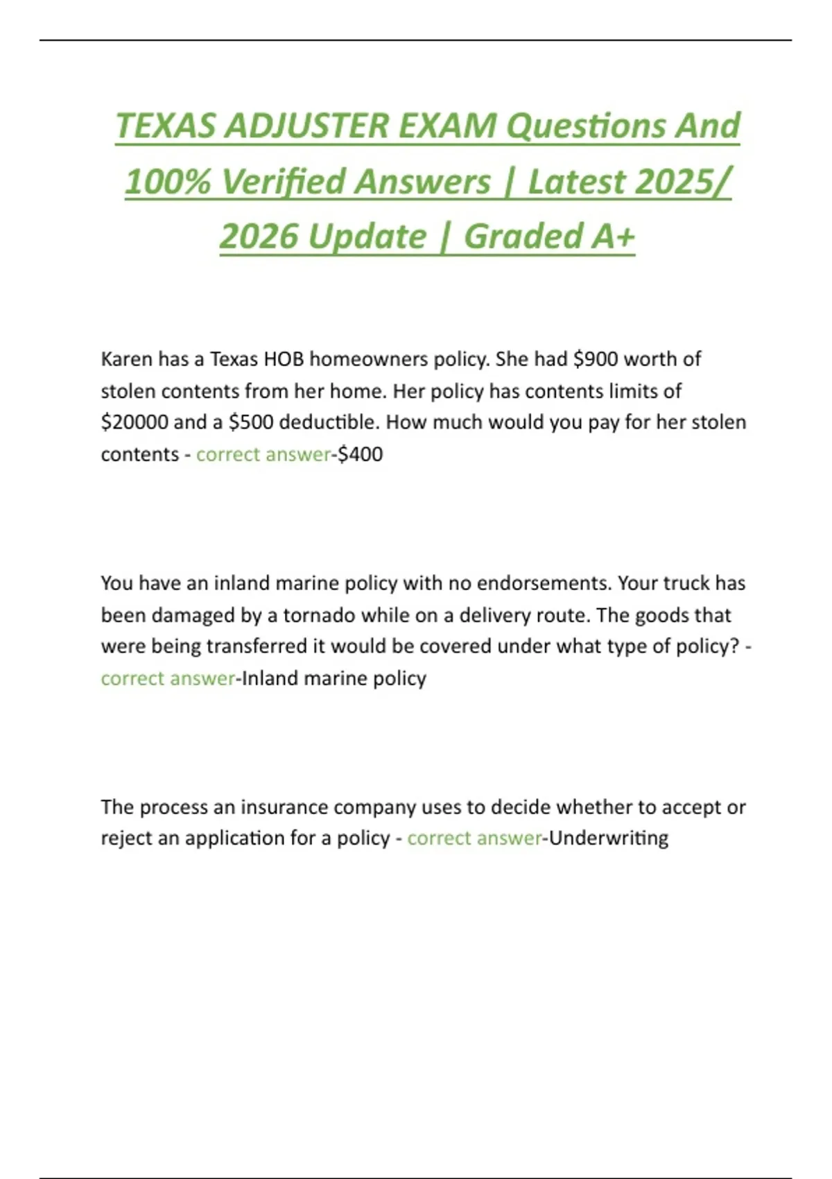 Karen has a Texas HOB homeowners policy. She had $900 worth of