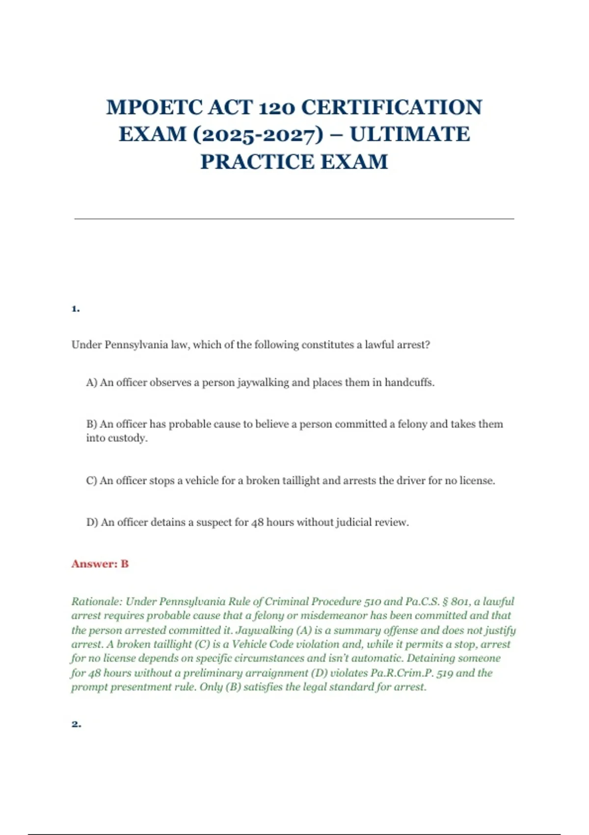 false). Thus, (B) is correct per MPOETC Directive 2025-MIRANDA-1.