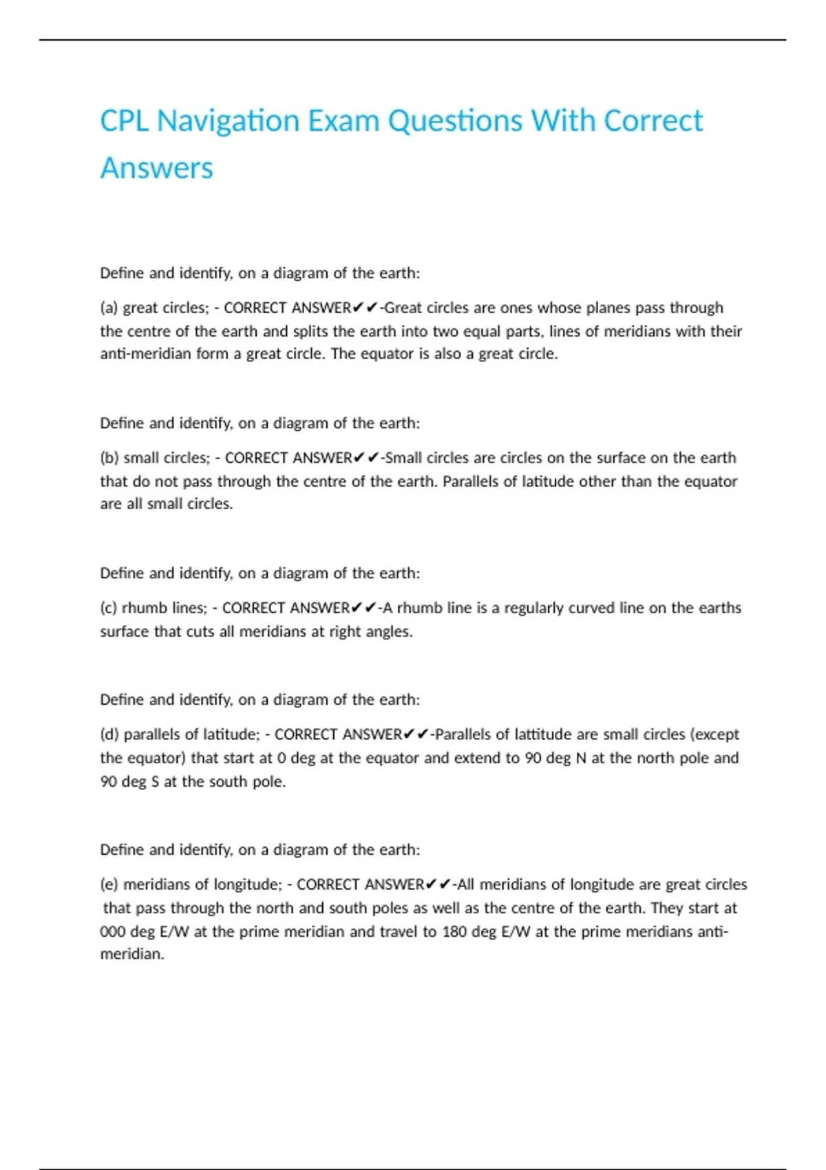 (e) |meridians |of |longitude; |- |CORRECT |ANSWER✔✔-All |meridians |of |longitude |are |great |circles
