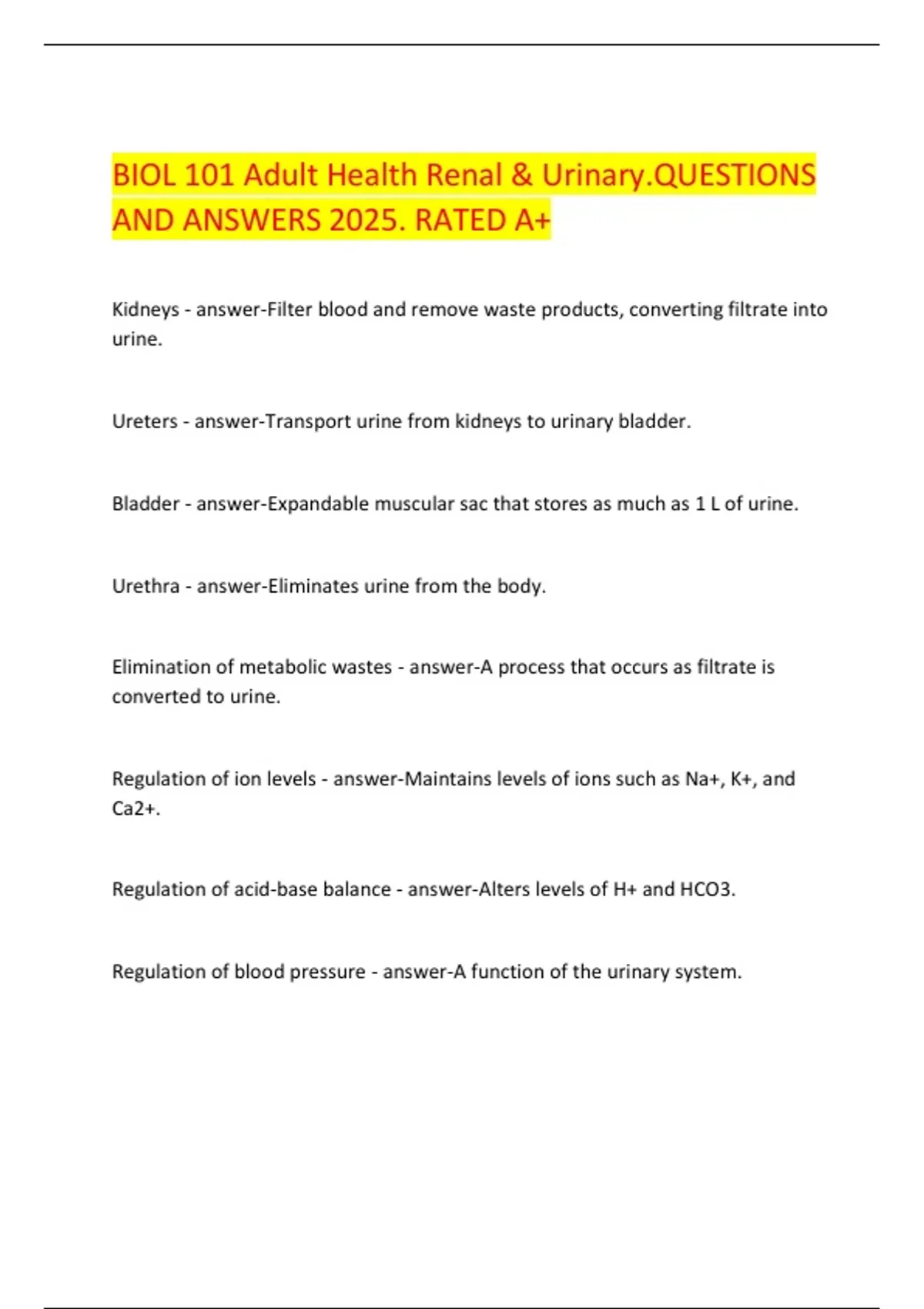 Regulation of ion levels - answer-Maintains levels of ions such as Na+, K+, and