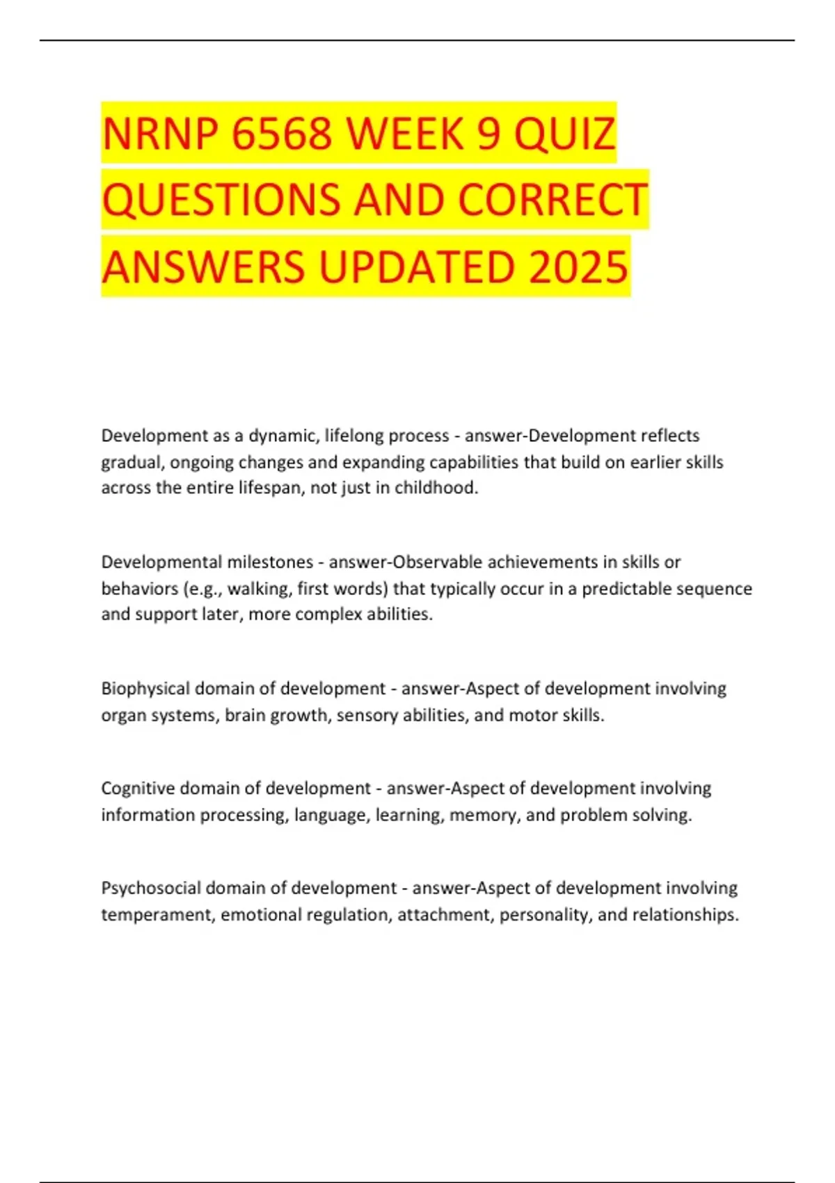 NRNP 6568 WEEK 9 QUIZ QUESTIONS AND CORRECT ANSWERS UPDATED 2025