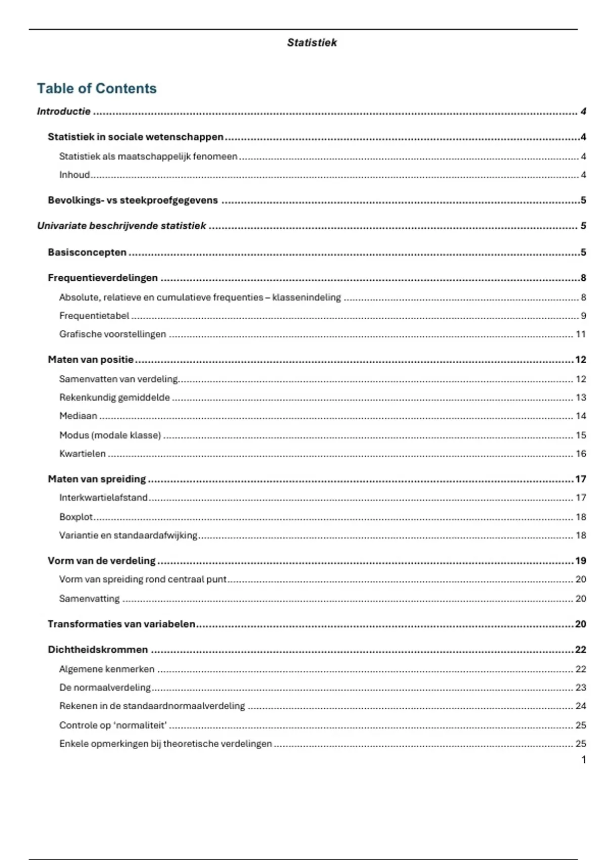 Samenvatting statistiek 1e bach of schakeljaar communicatiewetenschappen