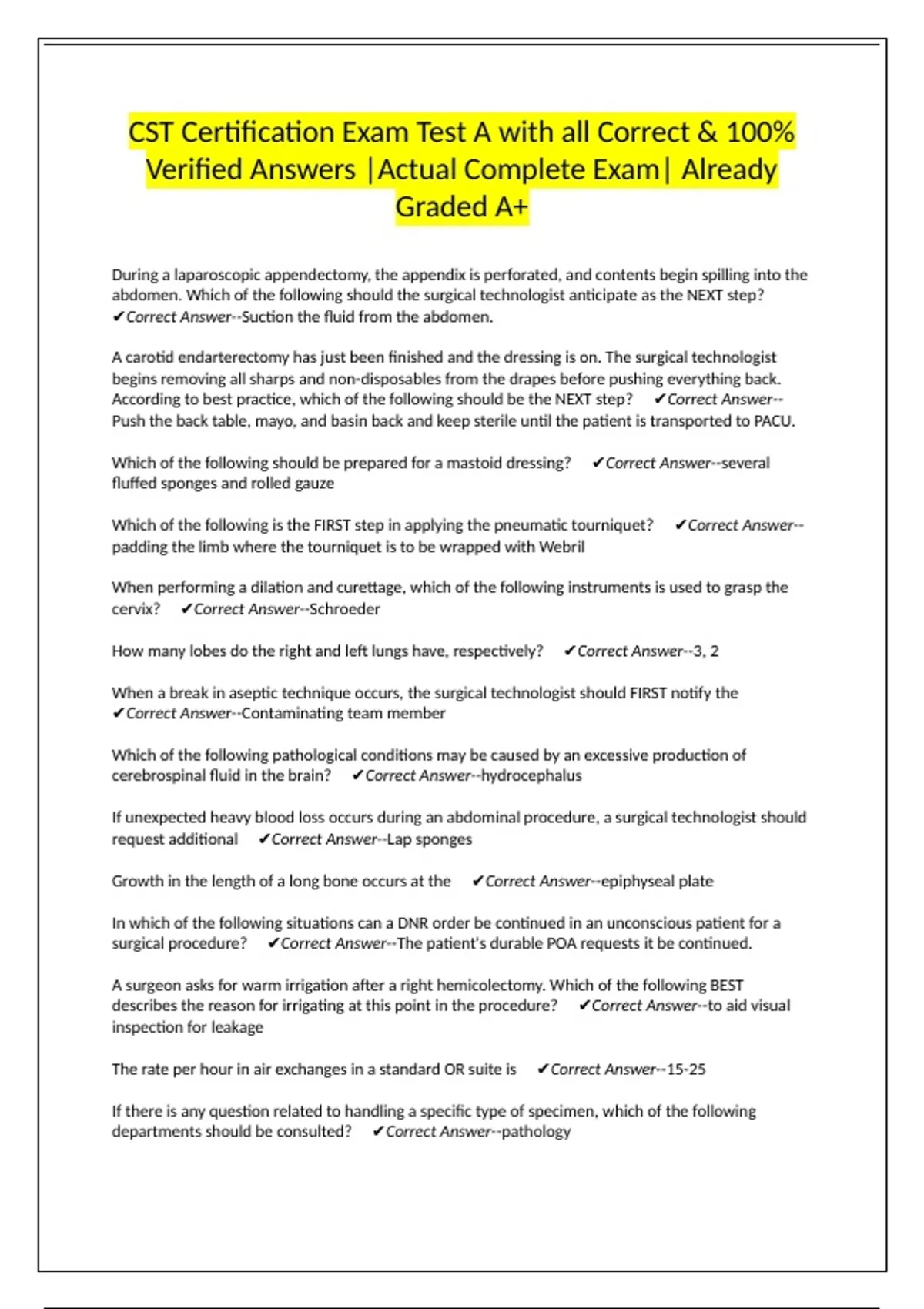CST Certification Exam Test A with all Correct & 100% Verified Answers |Actual Complete Exam| Already Graded A+