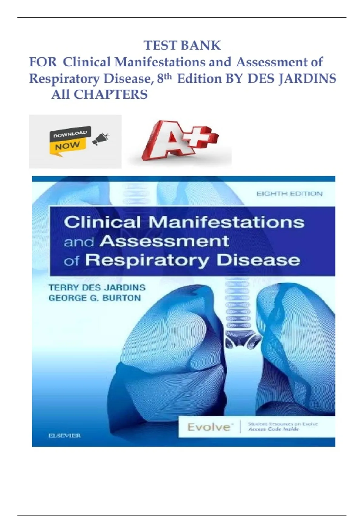 Latest TEST BANK FOR Clinical Manifestations and Assessment of Respiratory Disease, 8th Edition BY DES JARDINS All CHAPTERS