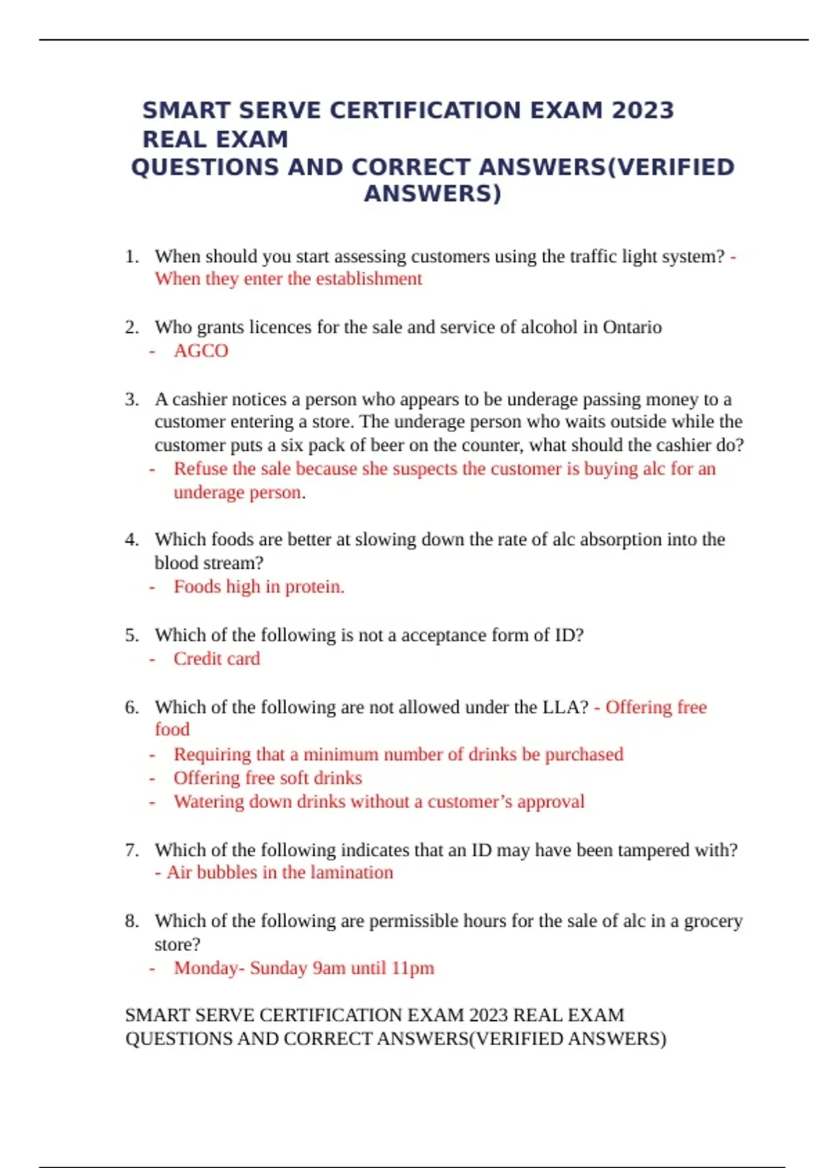 SMART SERVE CERTIFICATION EXAM 2023 REAL EXAM