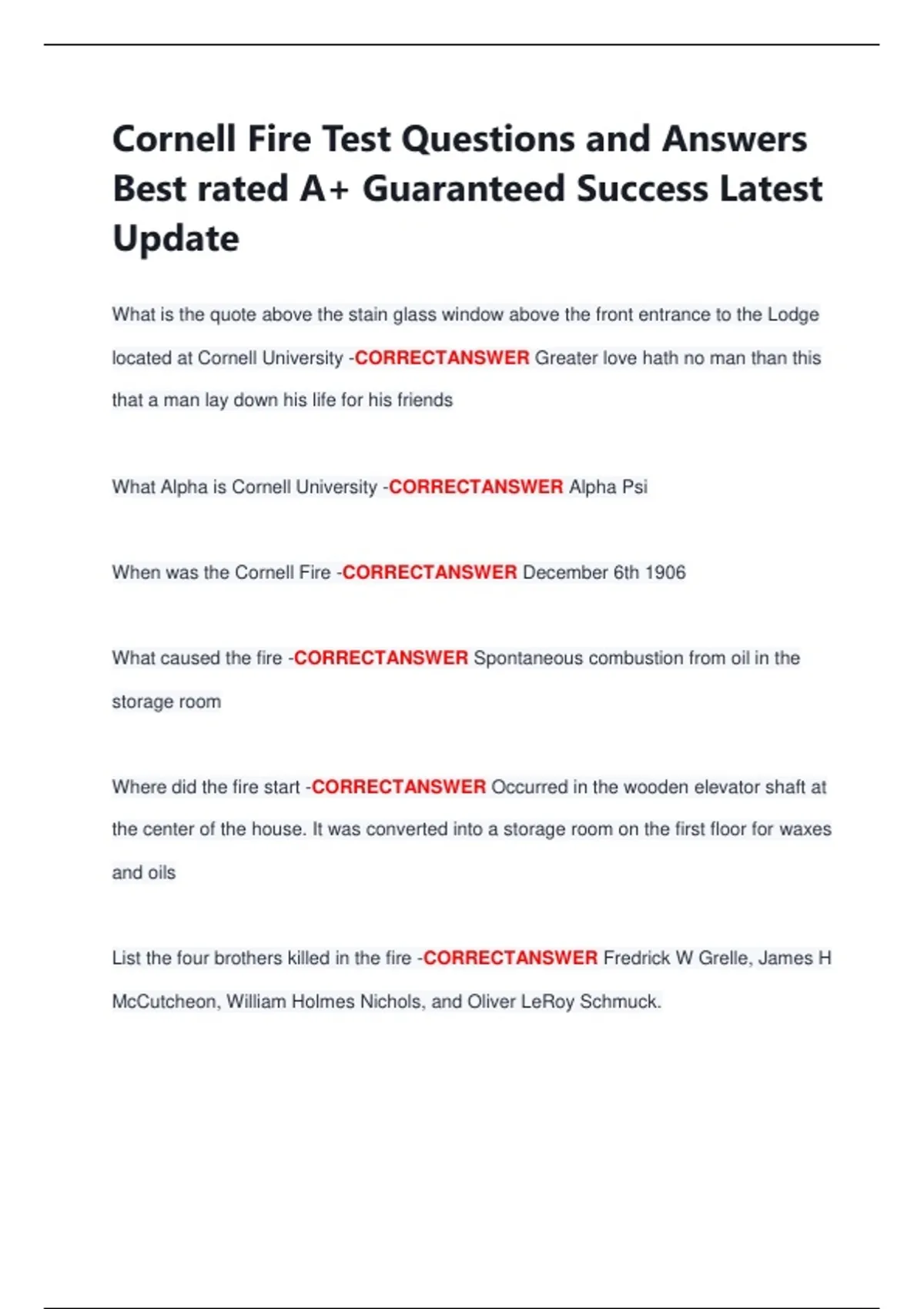 Cornell Fire Test Questions and Answers Best rated A+ Guaranteed Success Latest Update