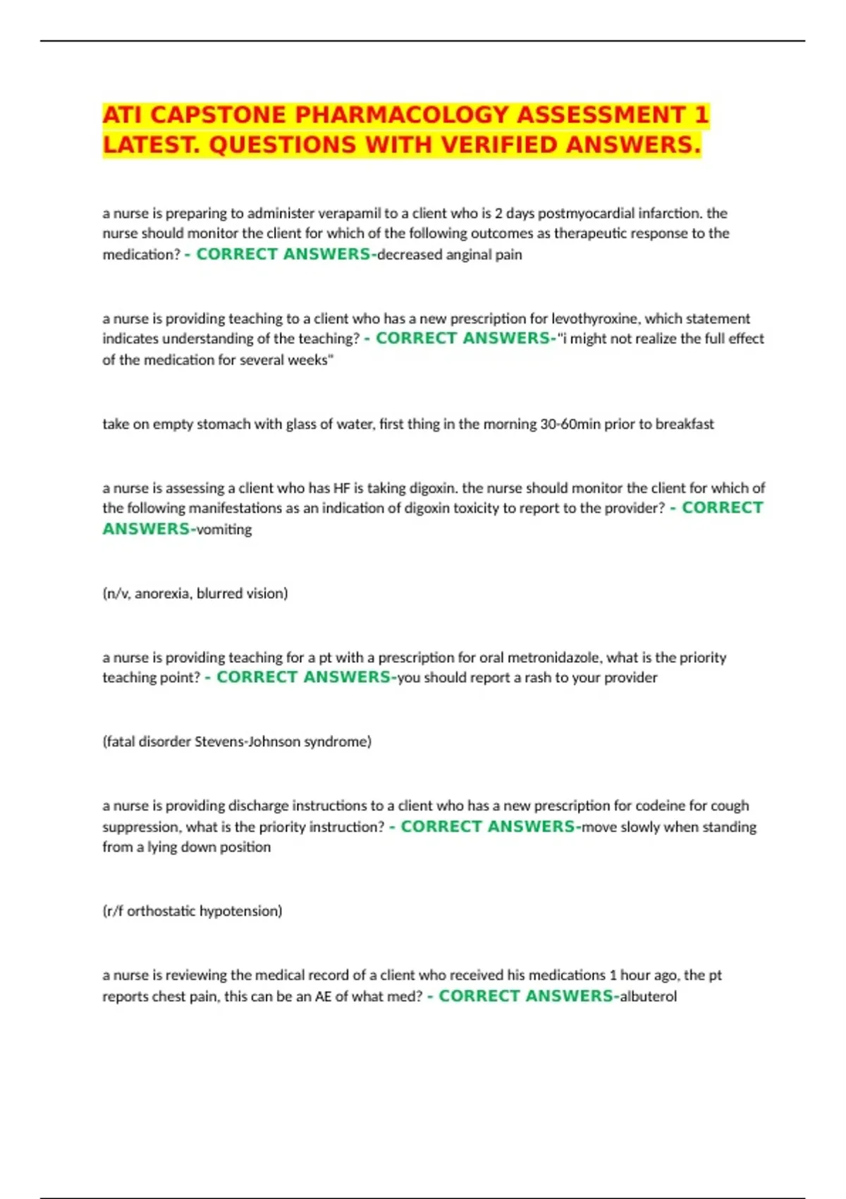 medication? - CORRECT ANSWERS-decreased anginal pain