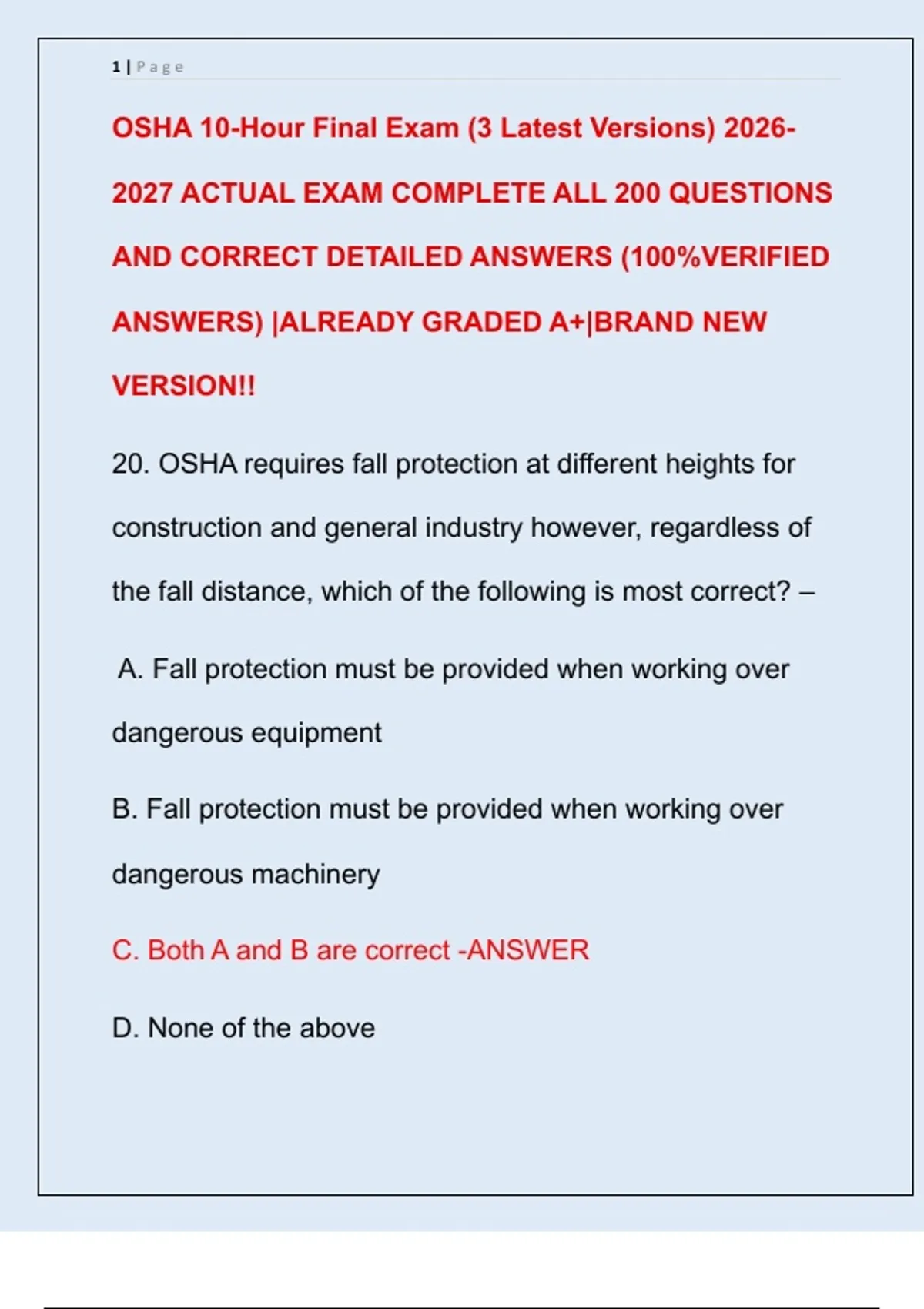 OSHA 10-Hour Final Exam (3 Latest Versions) 2026-