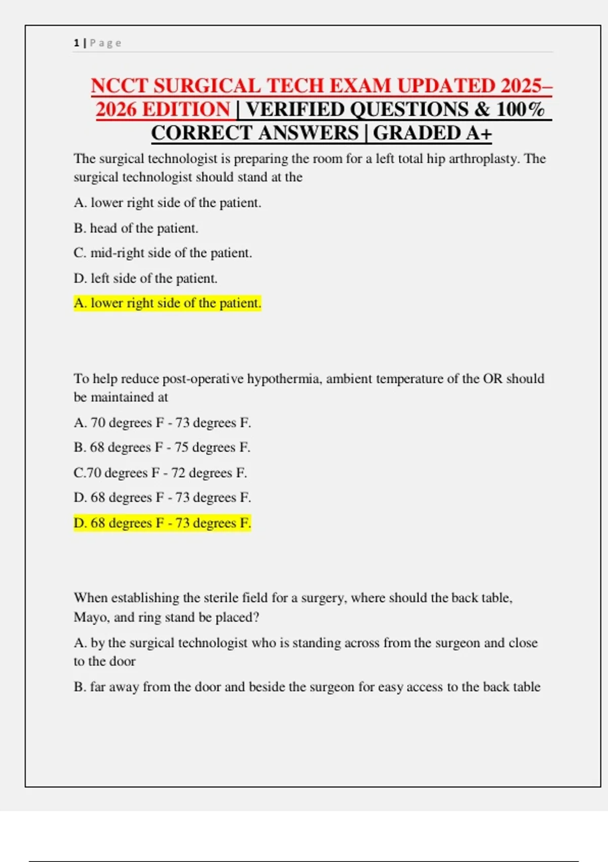 NCCT SURGICAL TECH EXAM UPDATED 2025–2026 EDITION | VERIFIED QUESTIONS & 100% CORRECT ANSWERS | GRADED A+