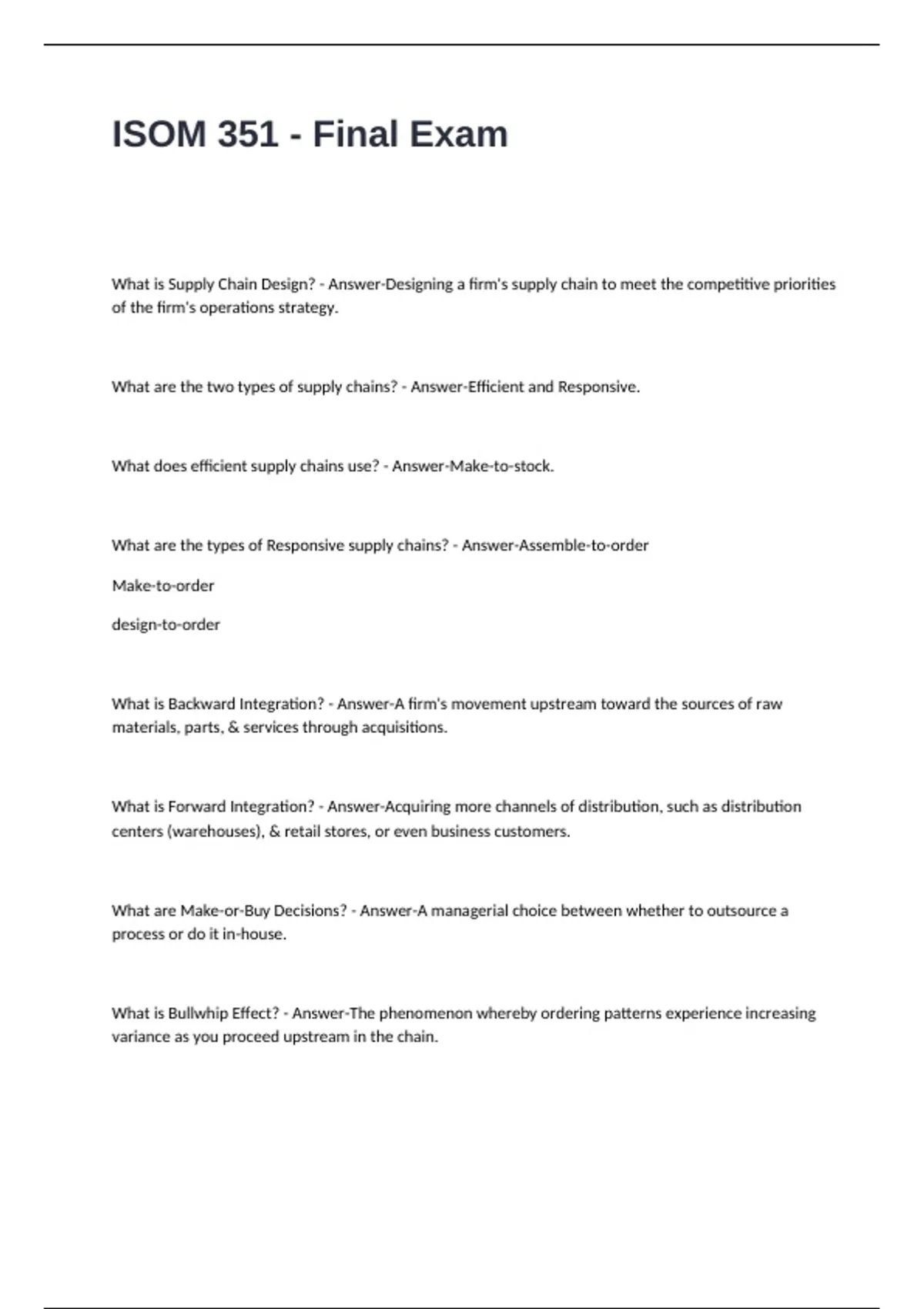 What are the two types of supply chains? - Answer-Efficient and Responsive.