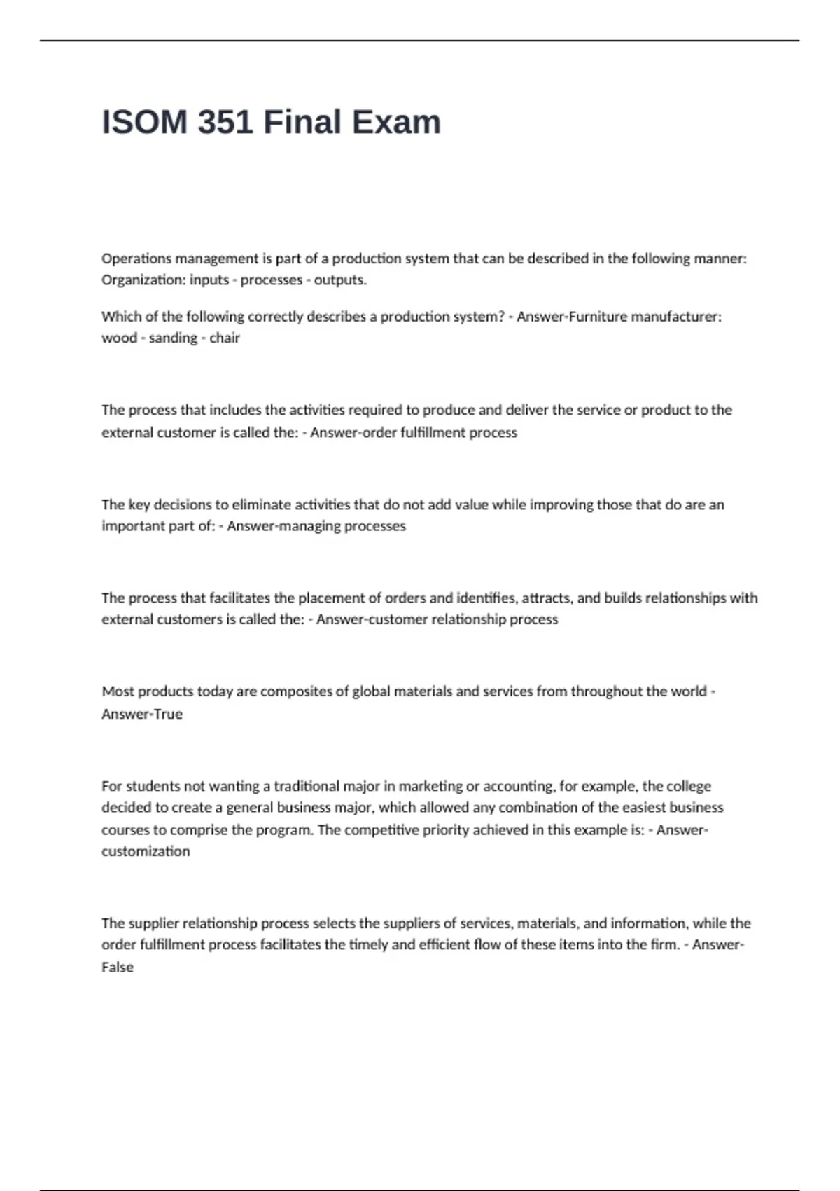 ISOM 351 Final Exam Questions and Answers