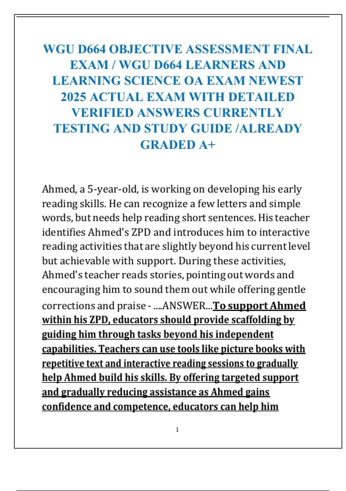 WGU D664 OBJECTIVE ASSESSMENT FINAL EXAM / WGU D664 LEARNERS AND LEARNING SCIENCE OA EXAM NEWEST 2025 ACTUAL EXAM WITH DETAILED VERIFIED ANSWERS CURRENTLY TESTING AND STUDY GUIDE /ALREADY GRADED A+