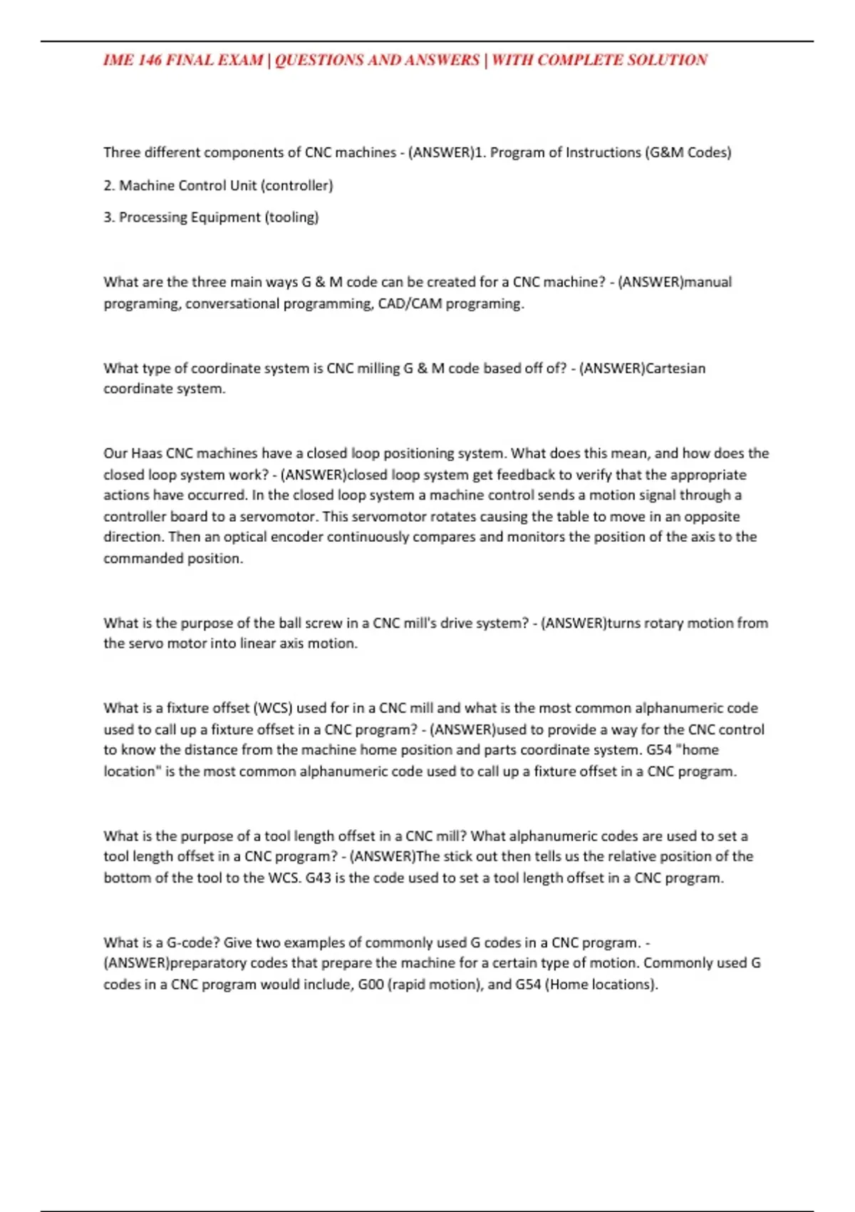 , IME 146 FINAL EXAM | QUESTIONS AND ANSWERS | WITH COMPLETE SOLUTION