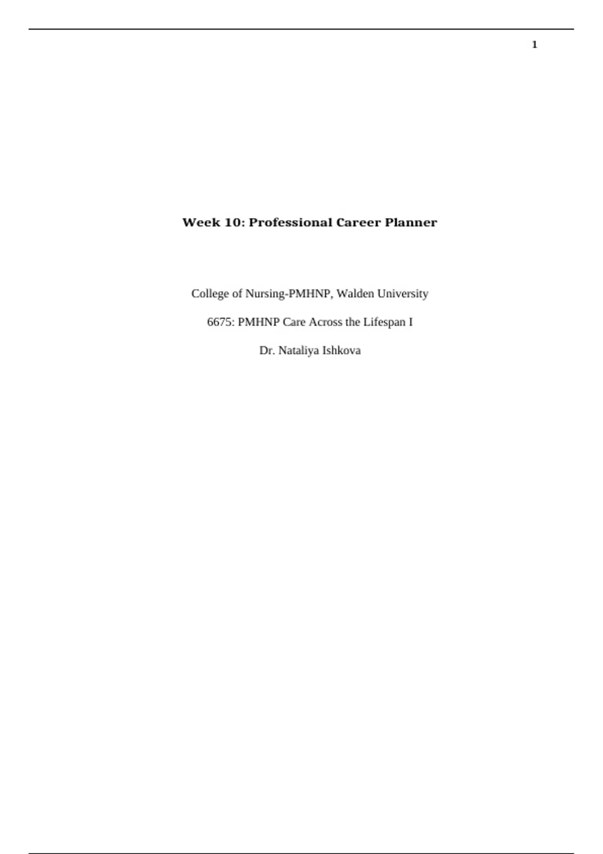 NRNP 6675 Week 10: Professional Career Planner FALL 2025 Walden