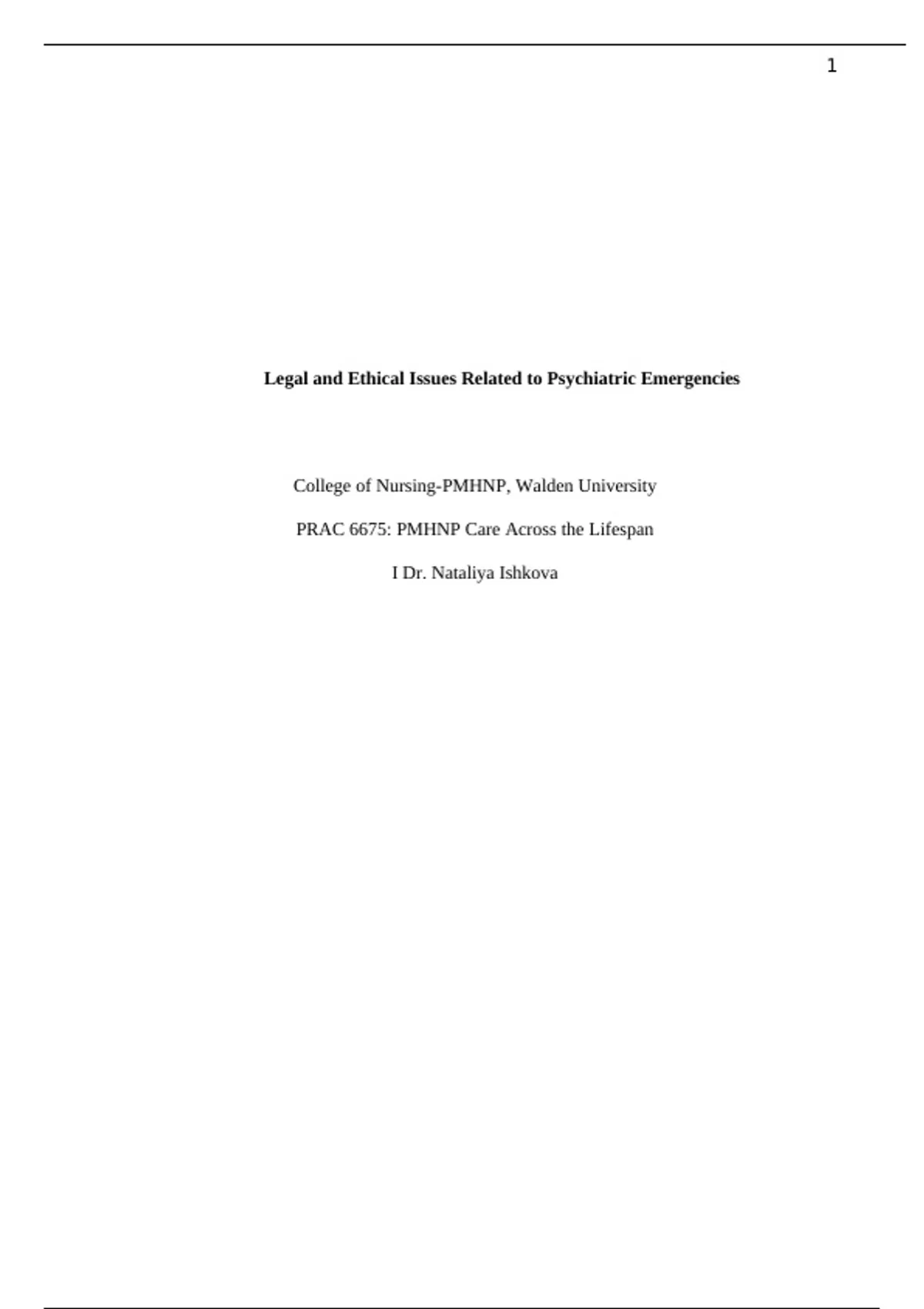 NRNP 6675 Legal and Ethical Issues Related to Psychiatric Emergencies FALL 2025 Walden